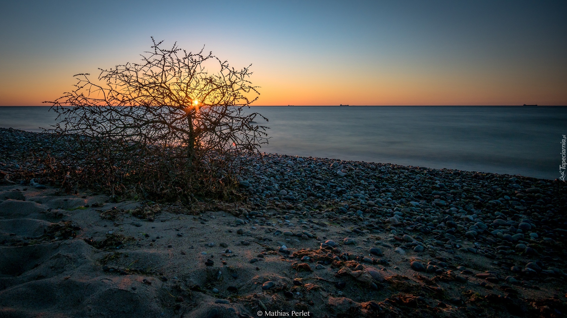 Edytor tapety: Morze, Drzewo, Wybrzeże, Kamienie, Zachód słońca