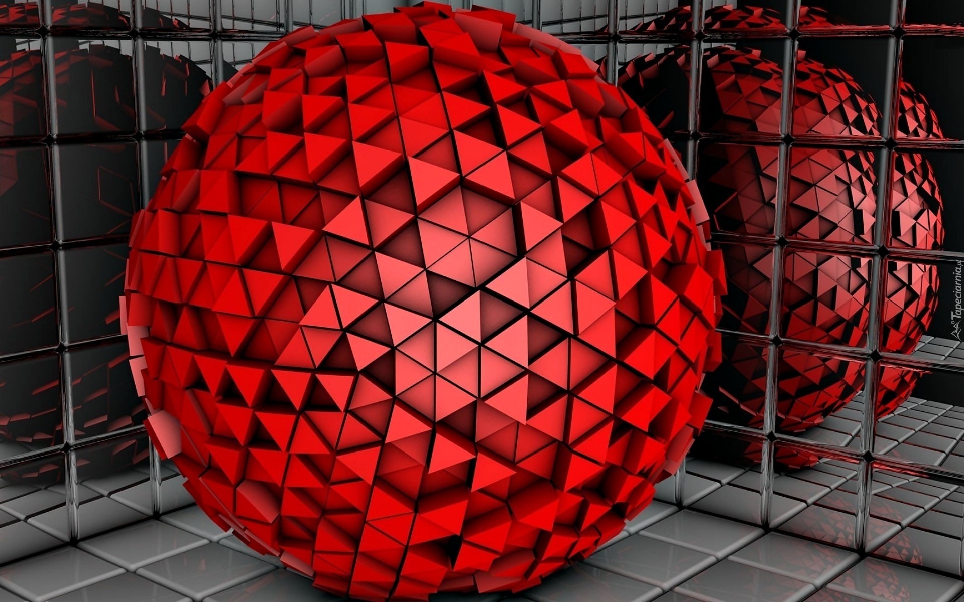Edytor tapety: Grafika, 3D, Czerwona, Piłka, Odbicie