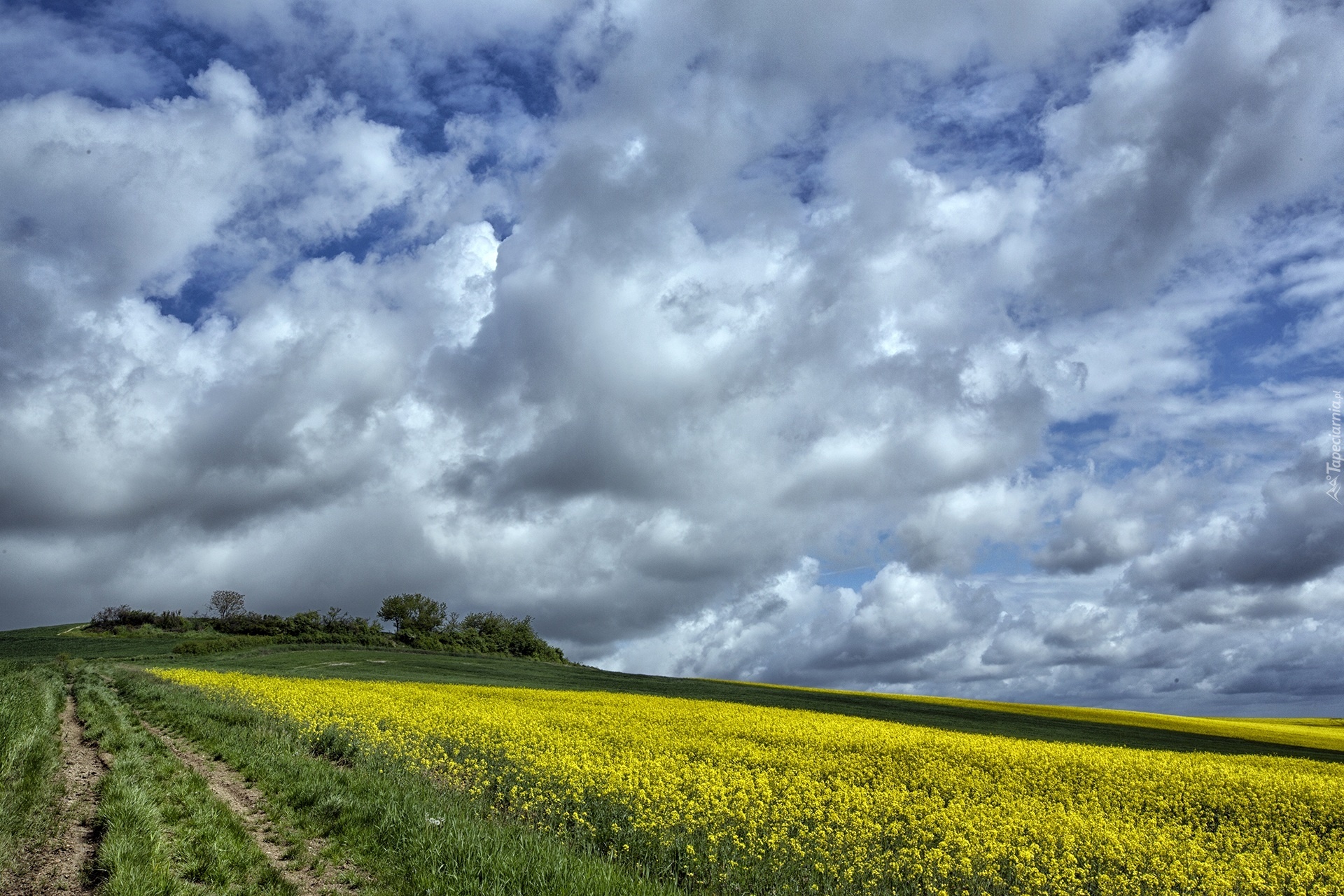 Edytor tapety: Pole, Rzepaku, Droga, Niebo, Chmury, Wiosna