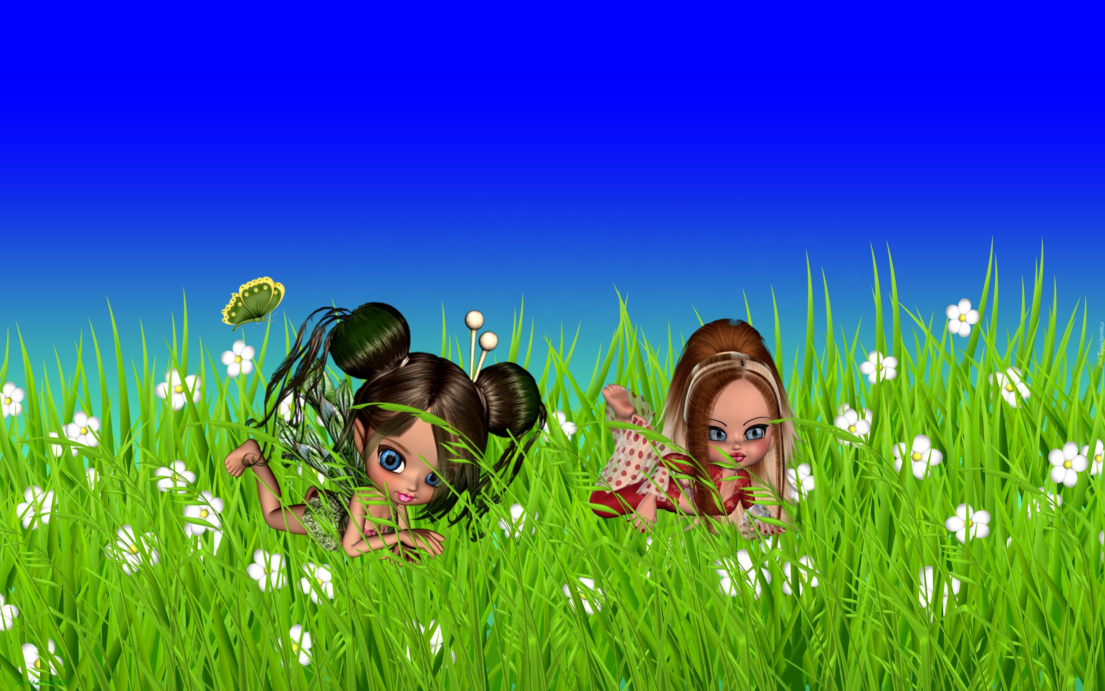 Edytor tapety: Łąka, kwiaty, Motylki, Trawa, 2D