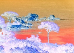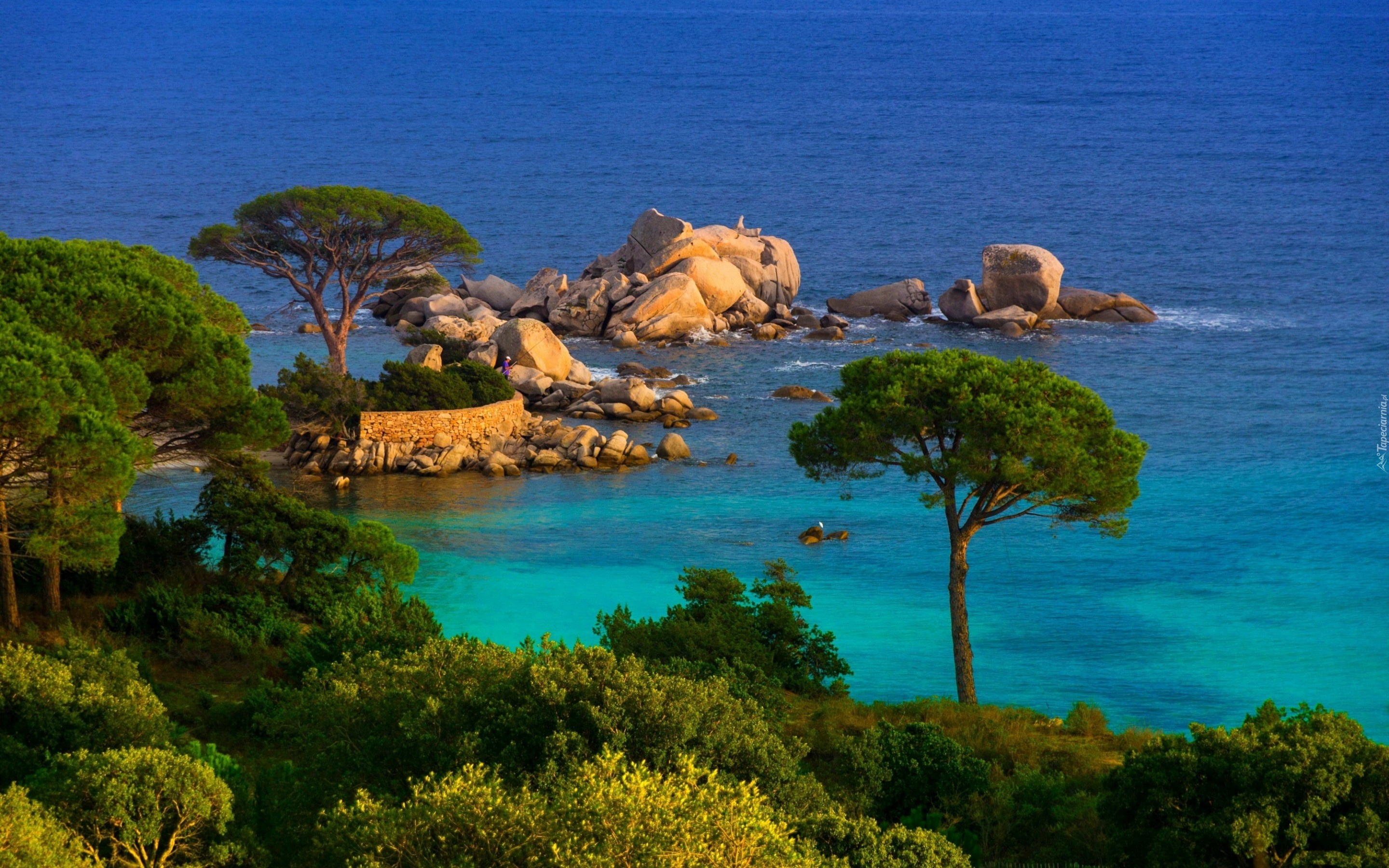 Edytor tapety: Morze, Skały, Drzewa