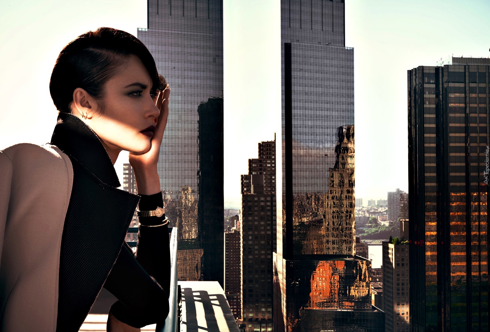 Edytor tapety: Olga Kurylenko, Modelka, Miasto, Wieżowce