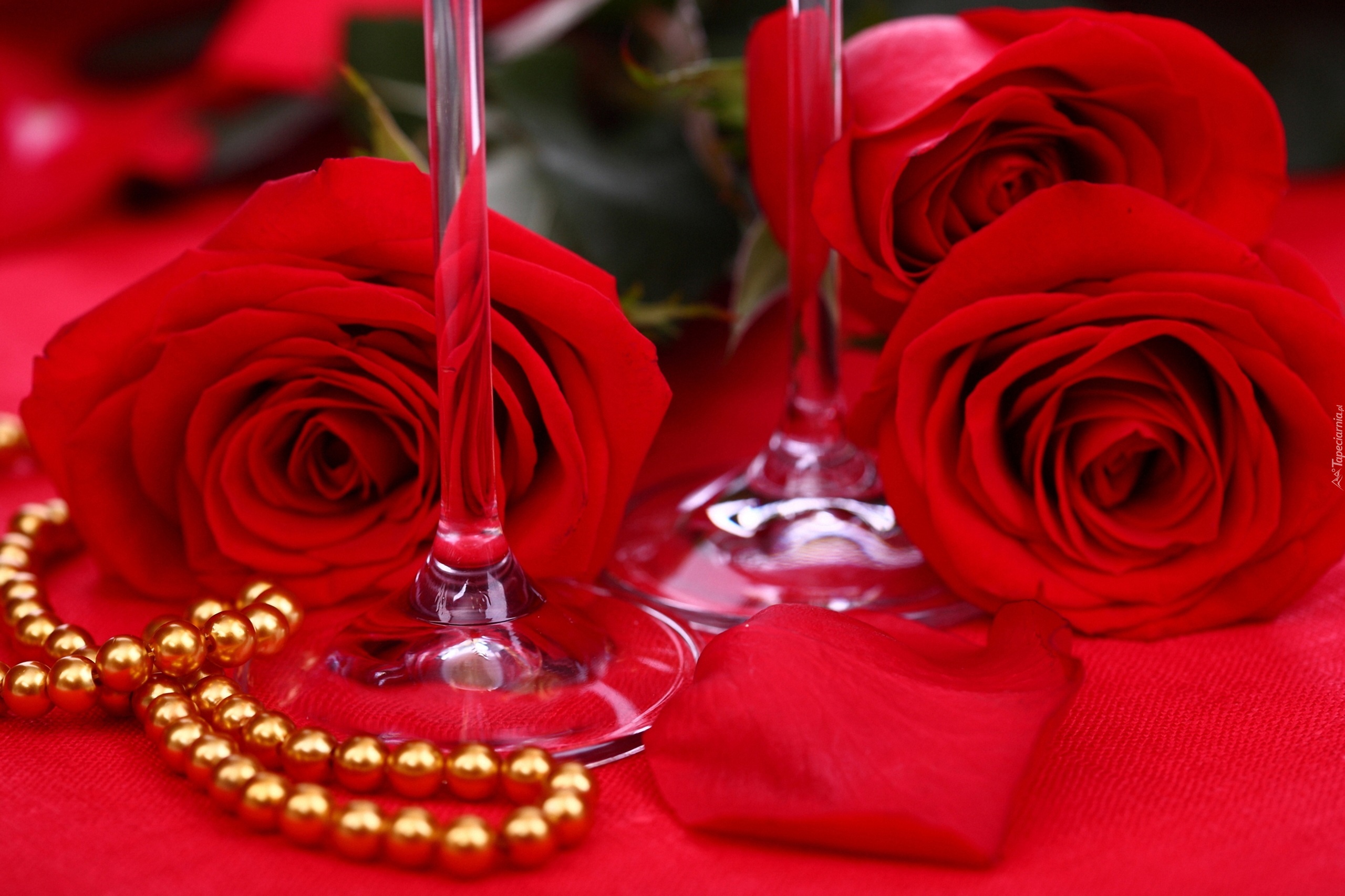 Edytor tapety: Nóżki kieliszka, Perły, Róże, Tło czerwone