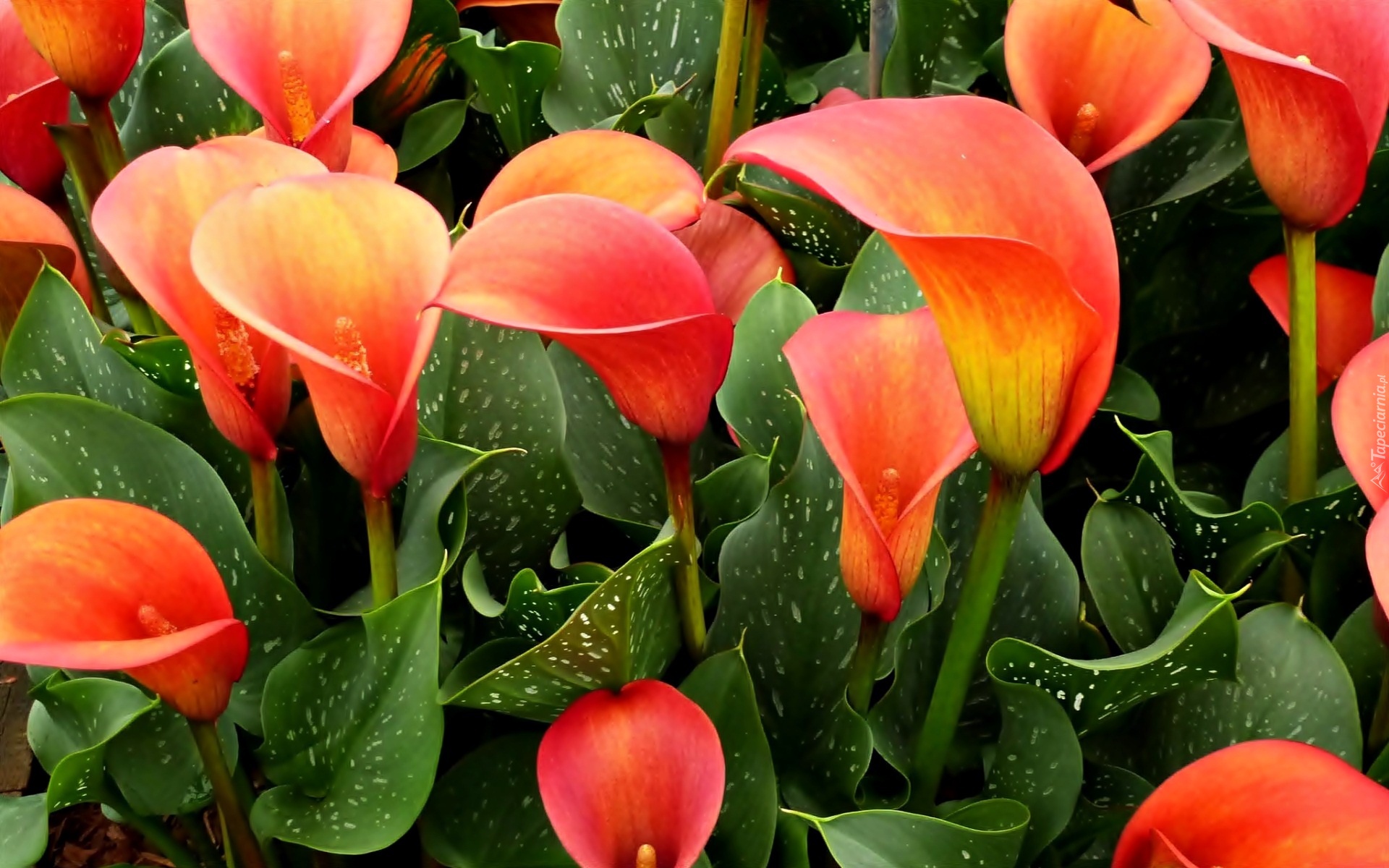 Edytor tapety: Żółto, Czerwone, Kwiaty, Kalia