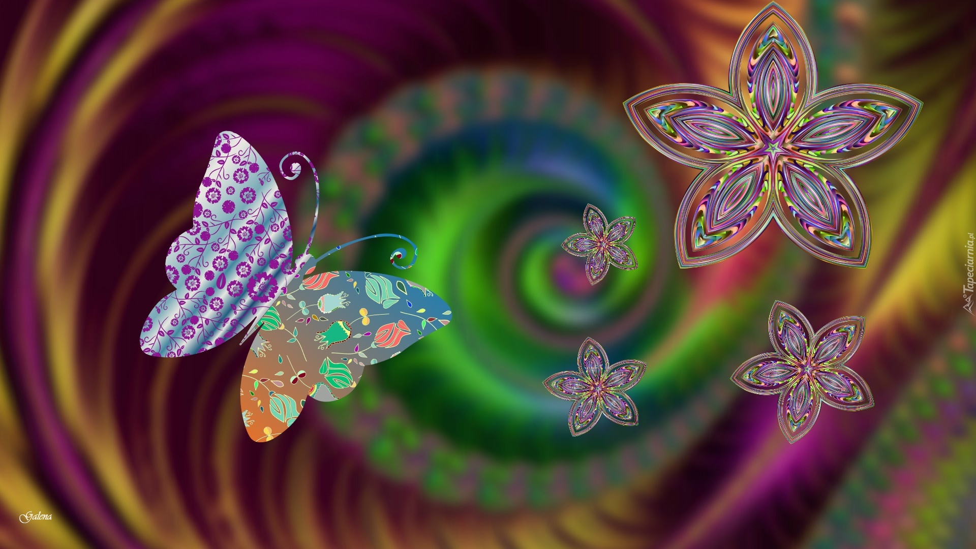 Edytor tapety: Motyl, Kwiaty, Abstrakcja, Grafika