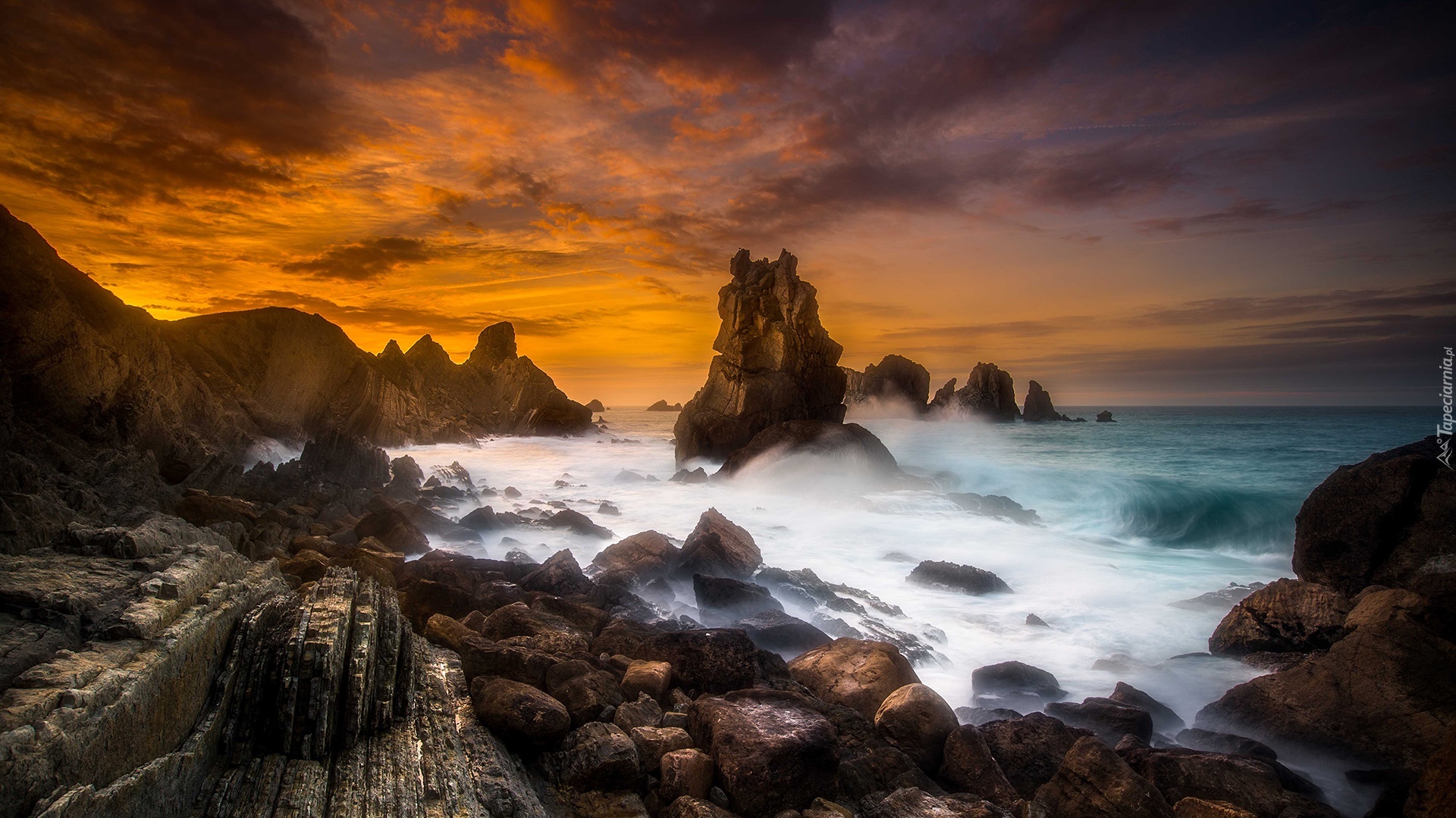 Edytor tapety: Zachód, Słońca, Morze, Skały