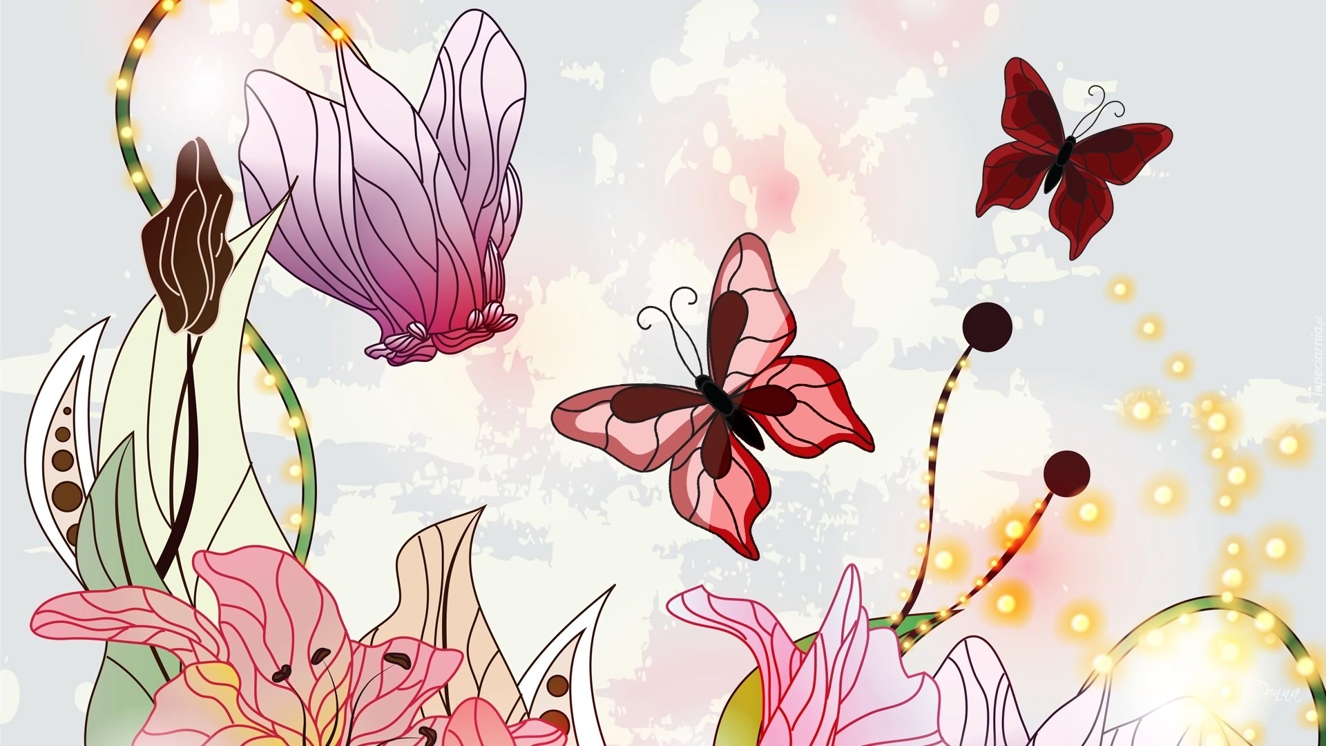 Edytor tapety: Grafika, 2D, Motyle, Kwiaty