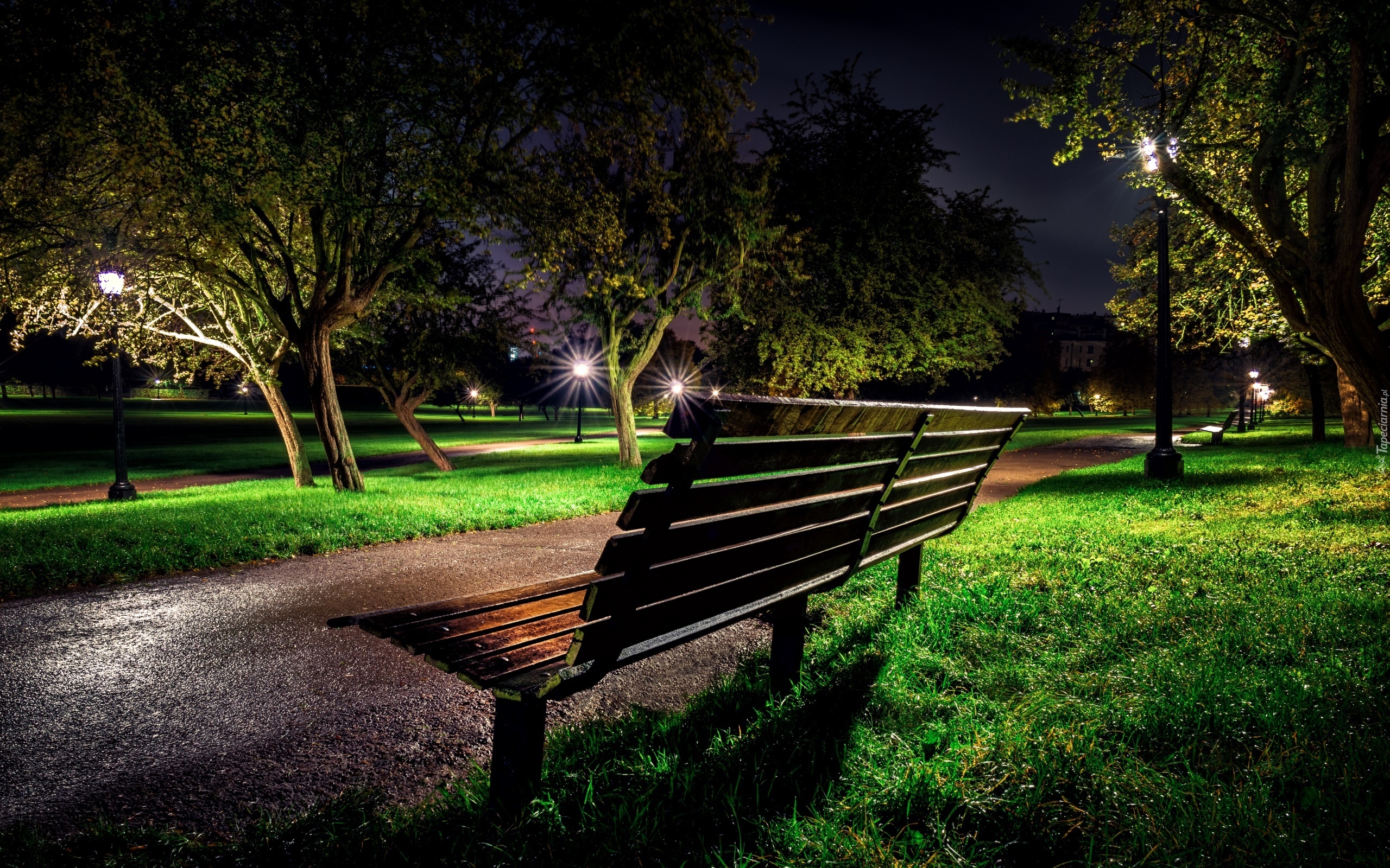 Edytor tapety: Park, Noc, Ławeczka, Ławka