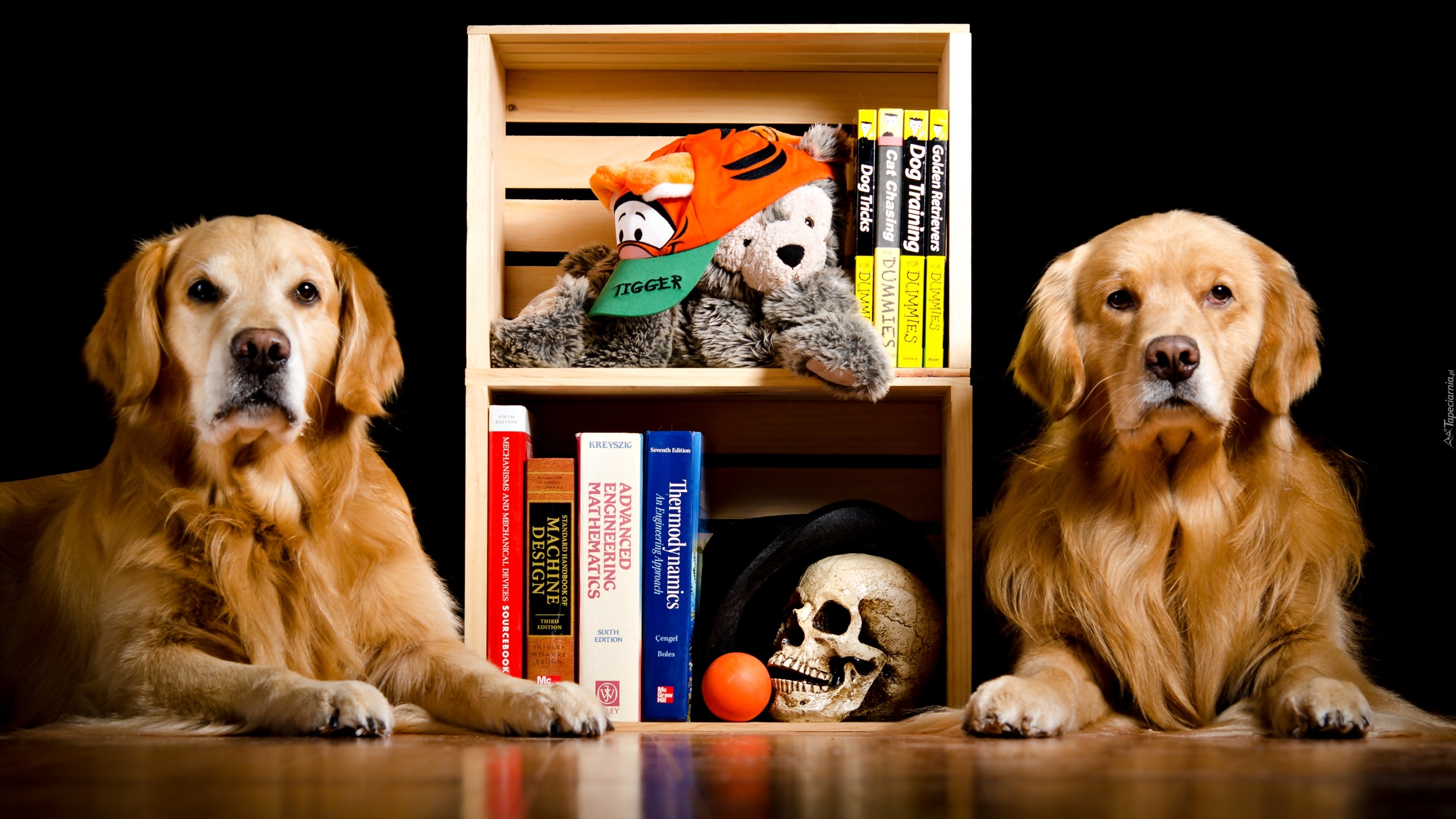 Edytor tapety: Dwa, Psy, Golden retrievery, Książki