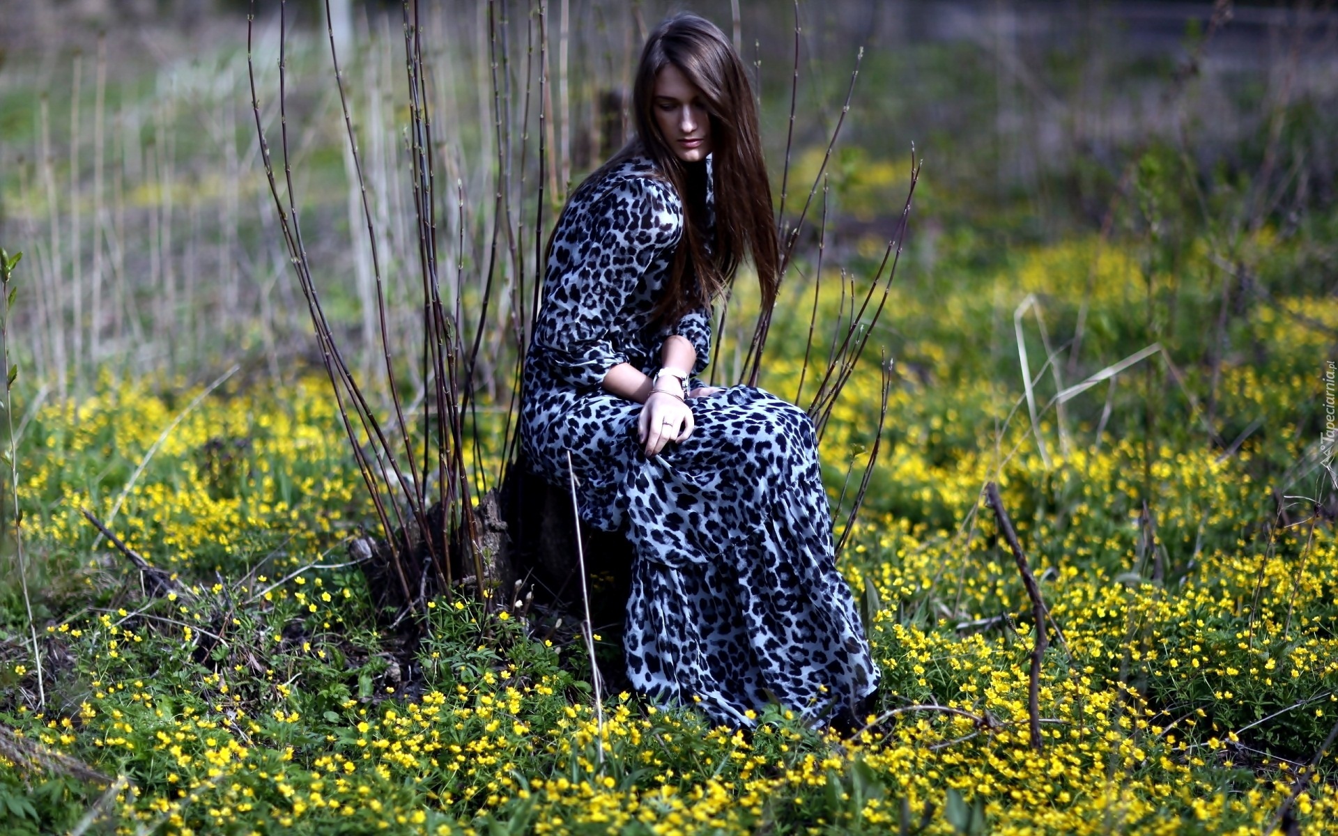 Edytor tapety: Kobieta, Żółte, Kwiaty, Pień