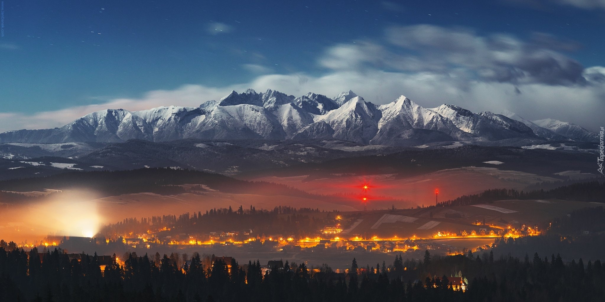 Edytor tapety: Góry, Tatry, Noc, Domy, Drzewa