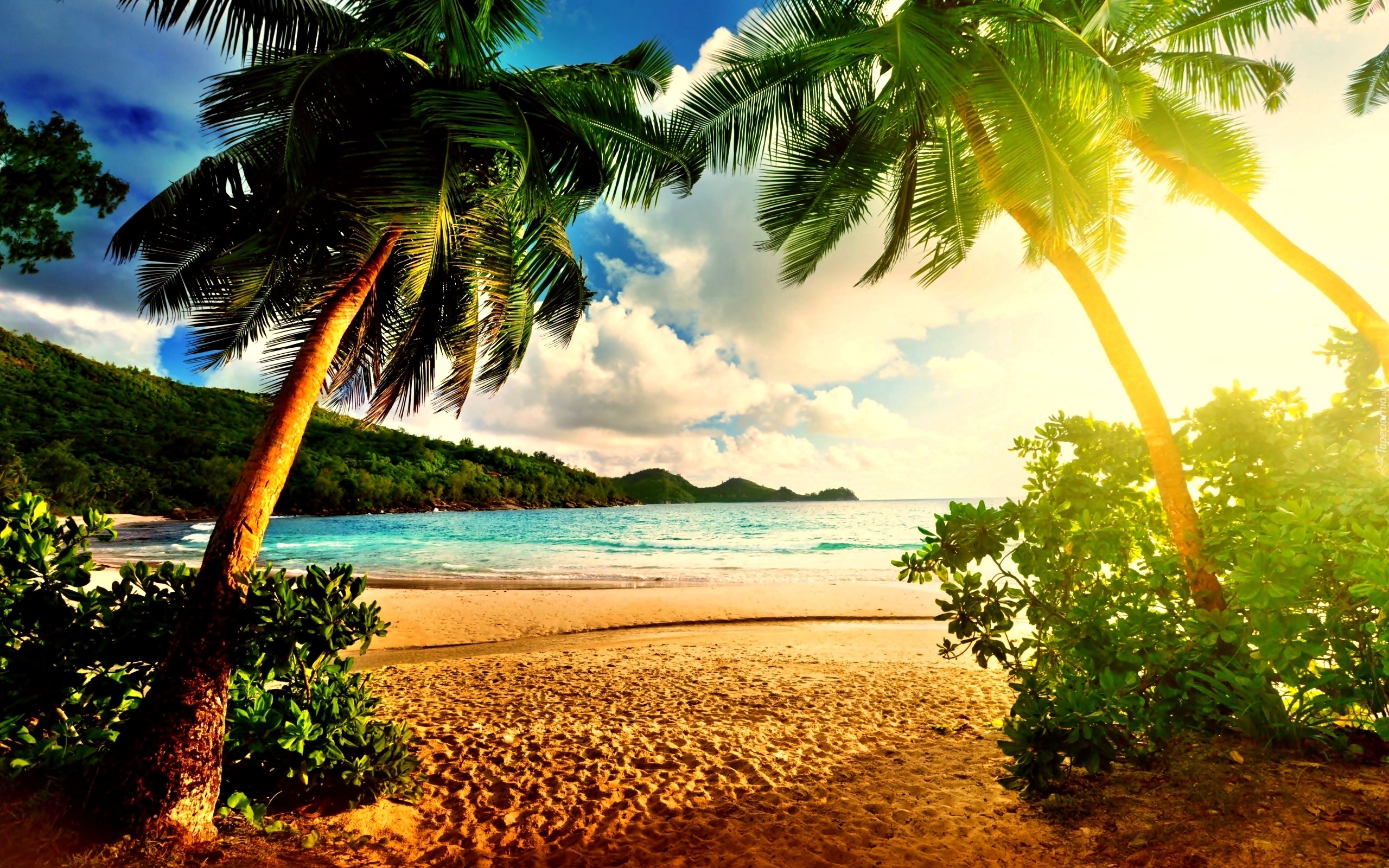 Edytor tapety: Morze, Plaża, Palmy