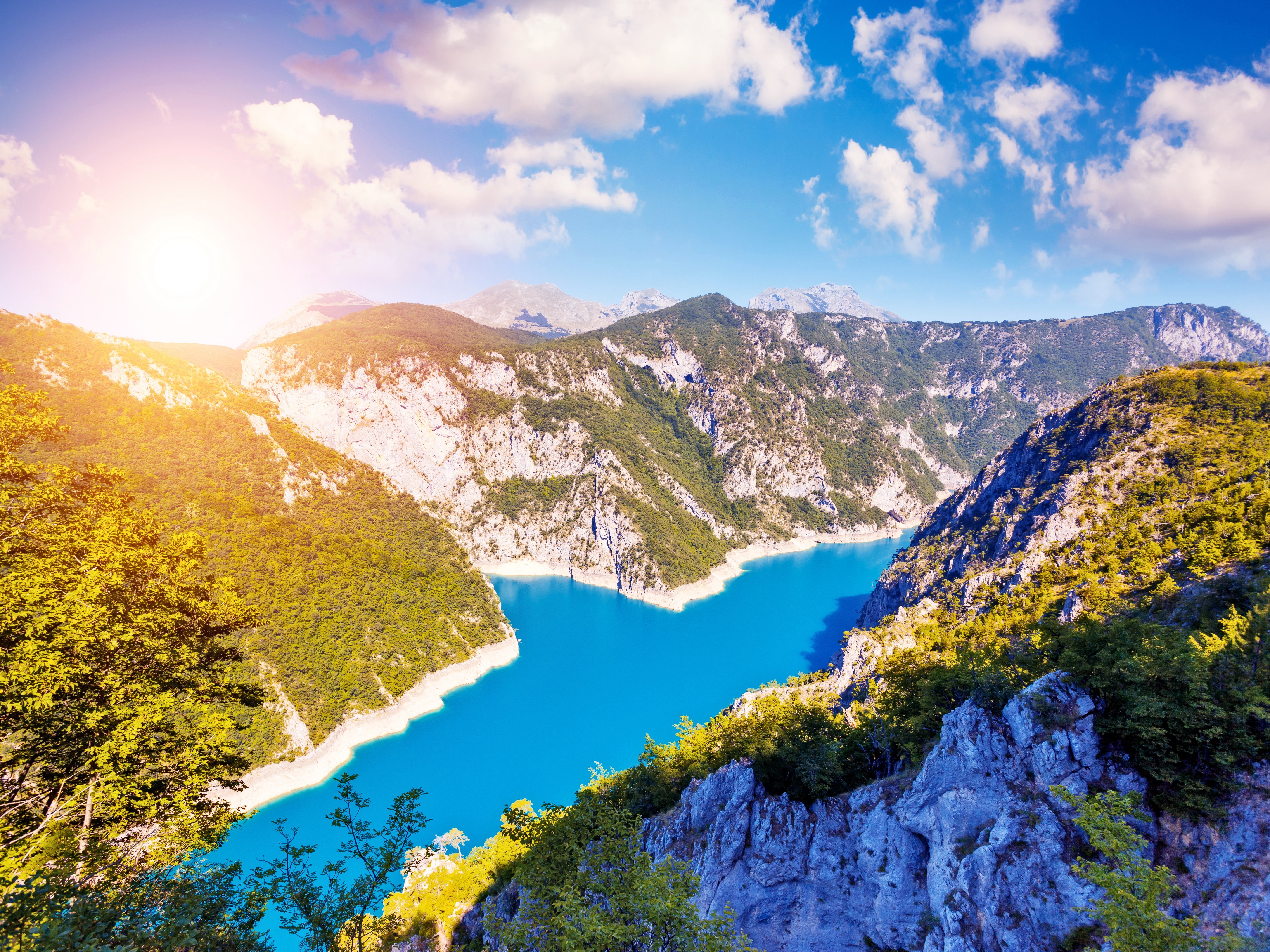 Edytor tapety: Góry, Jezioro, Chmury, Niebo