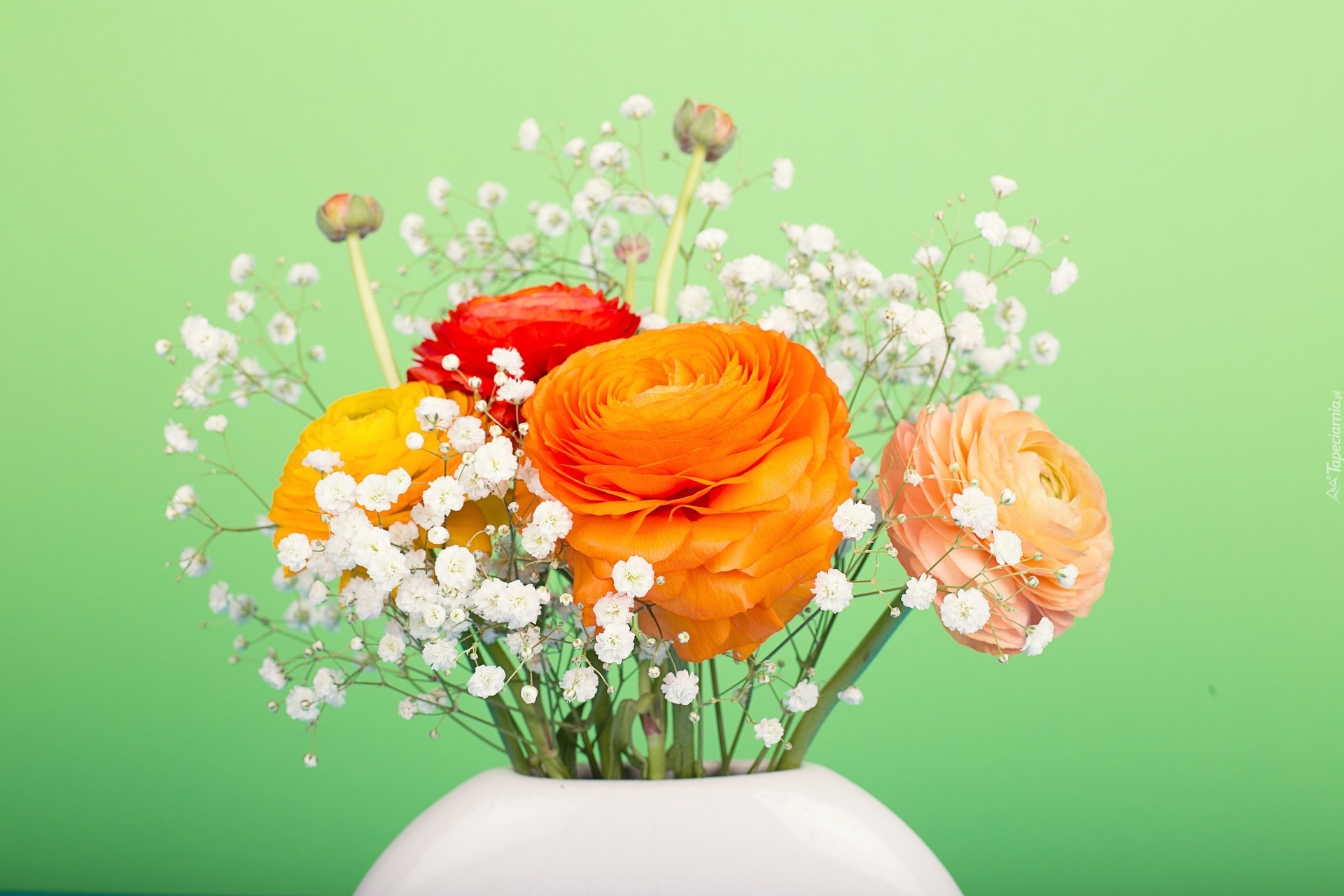 Edytor tapety: Wazon, Kolorowe, Jaskry, Gipsówka