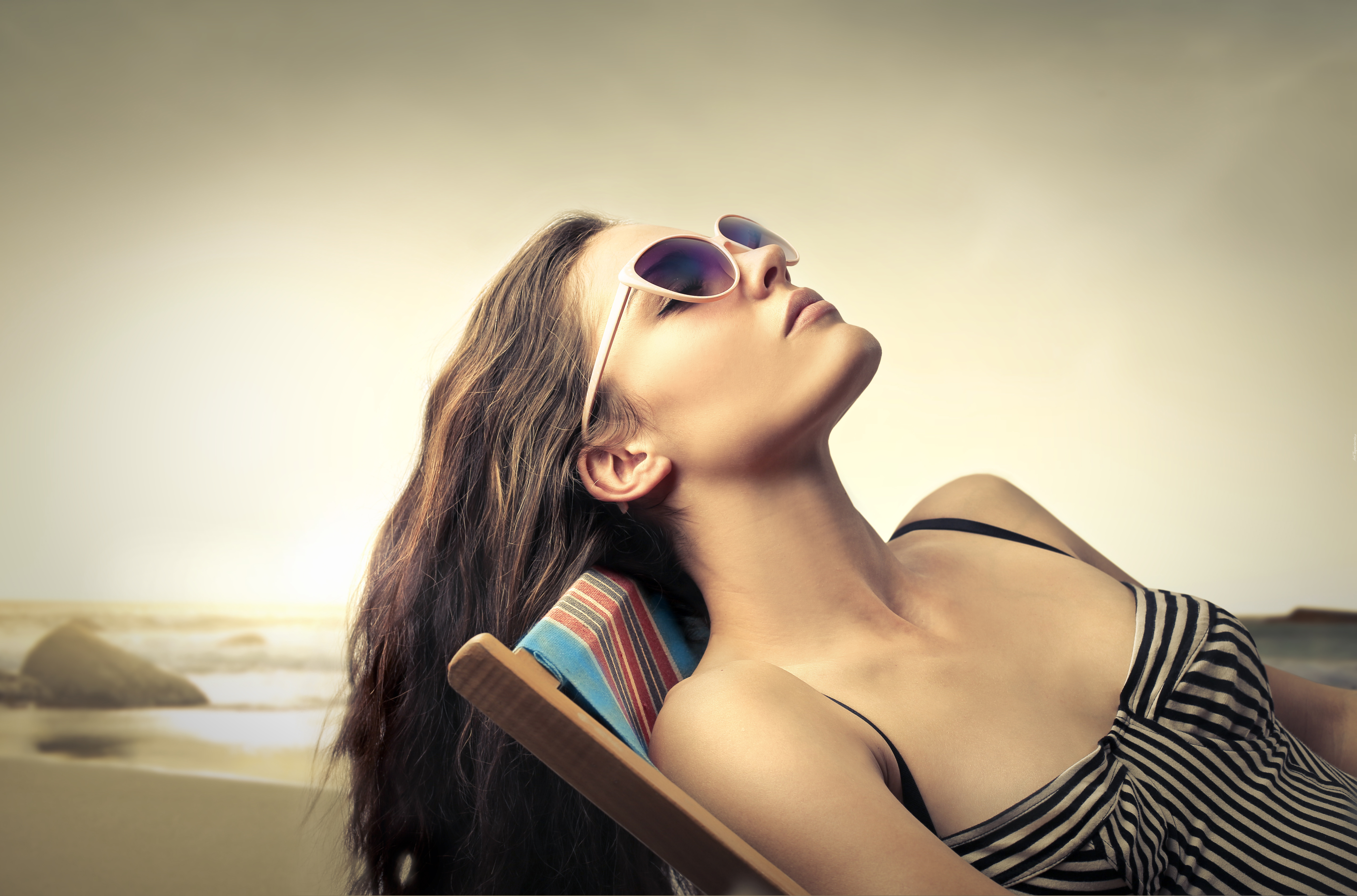 Edytor tapety: Kobieta, Leżak, Okulary, Wakacje