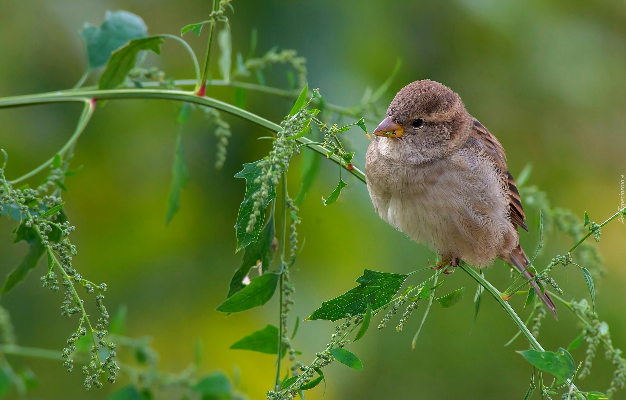 Edytor tapety: Wróbel, Ptak, Roślina, Gałązka