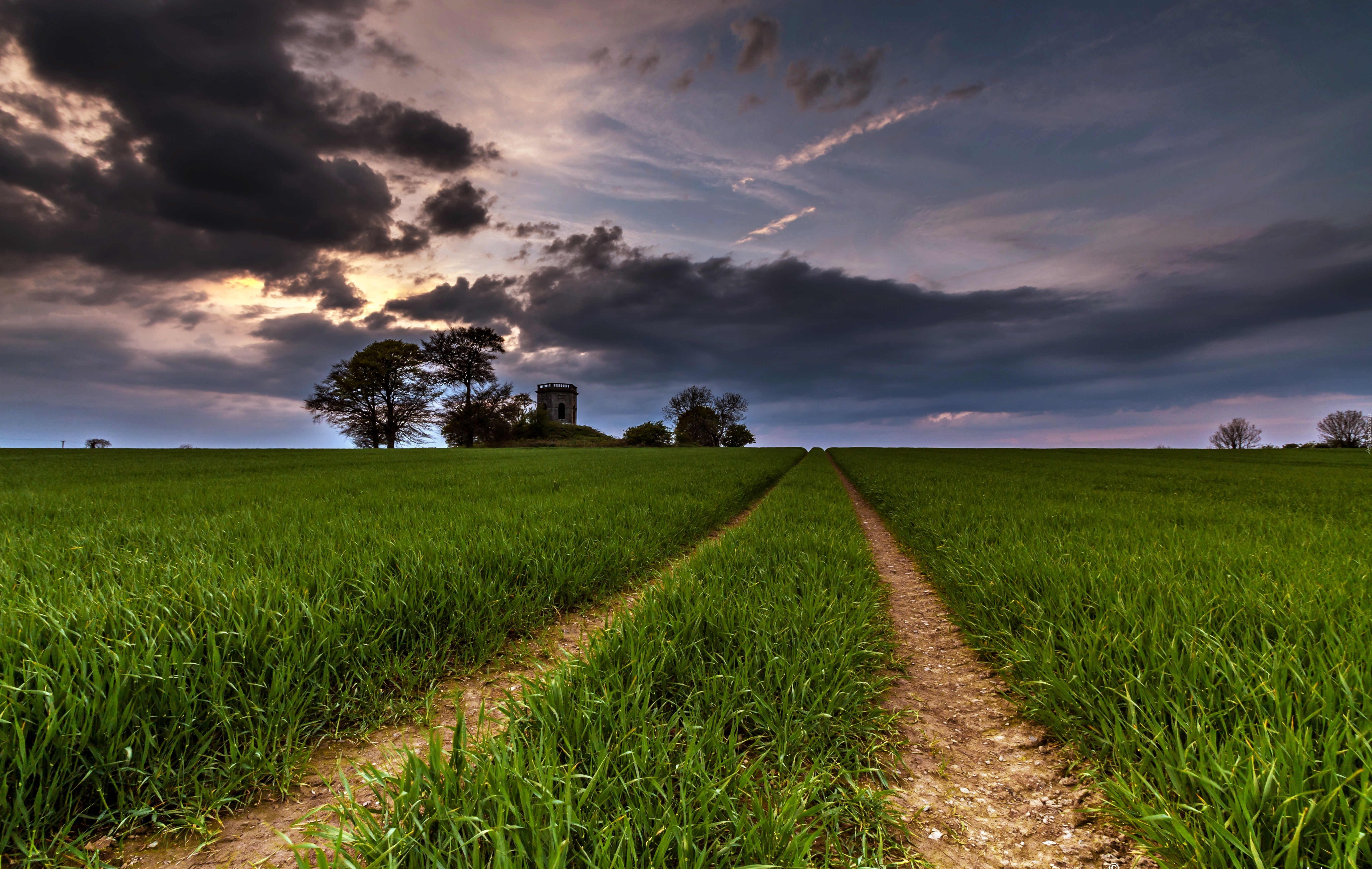 Edytor tapety: Łąka, Droga, Niebo, Chmury