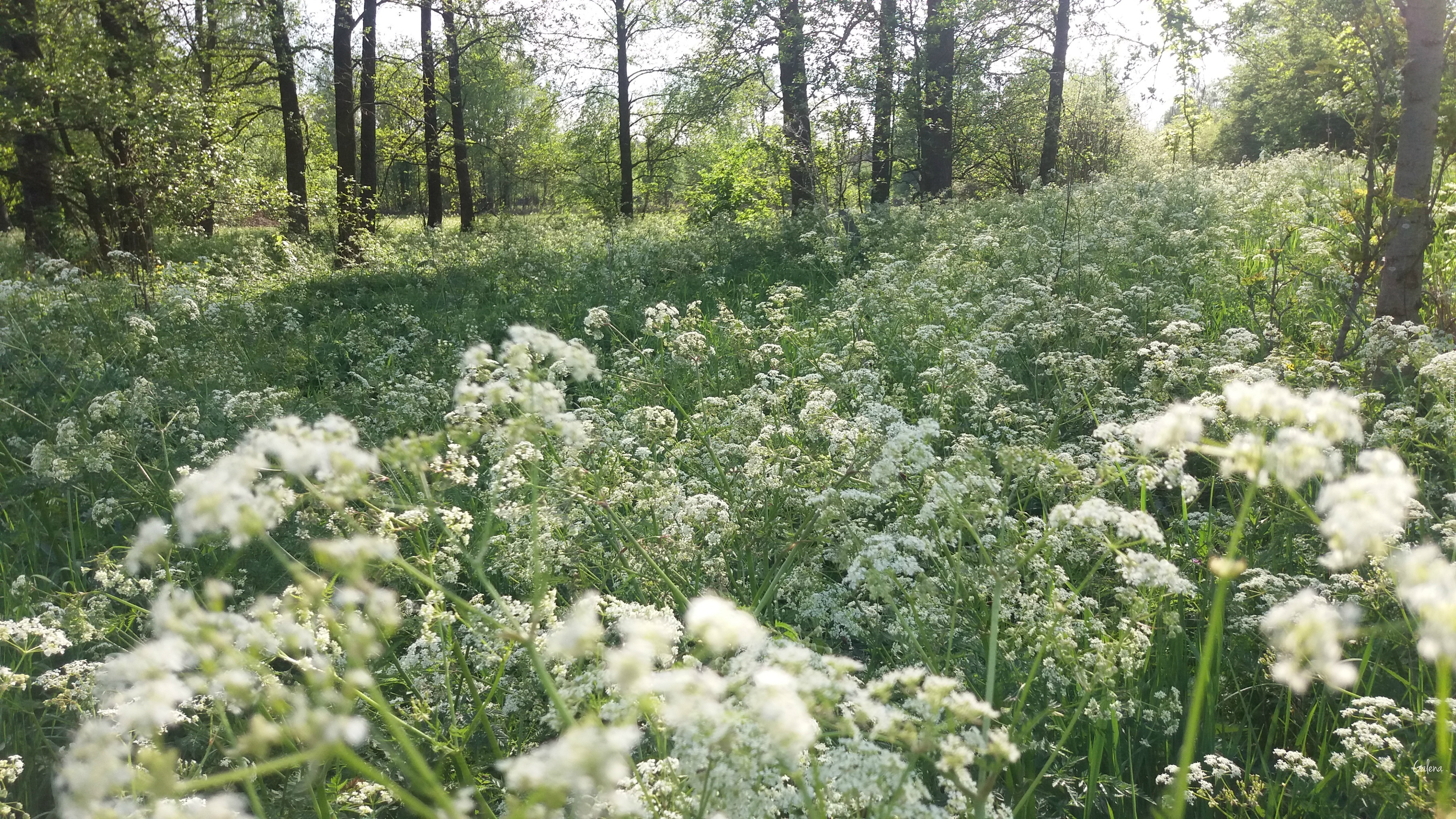 Edytor tapety: Białe, Kwiaty, Łąka, Las, Drzewa