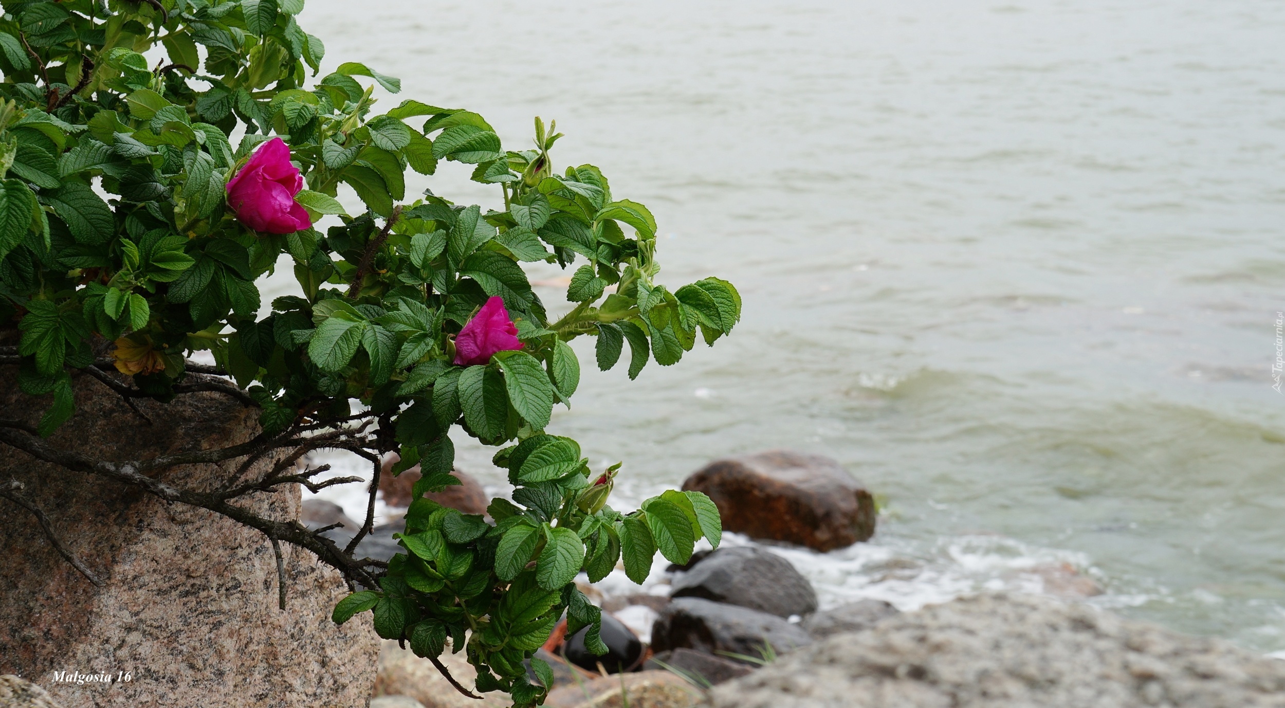 Edytor tapety: Morze, Woda, Kamienie, Dzika Róża