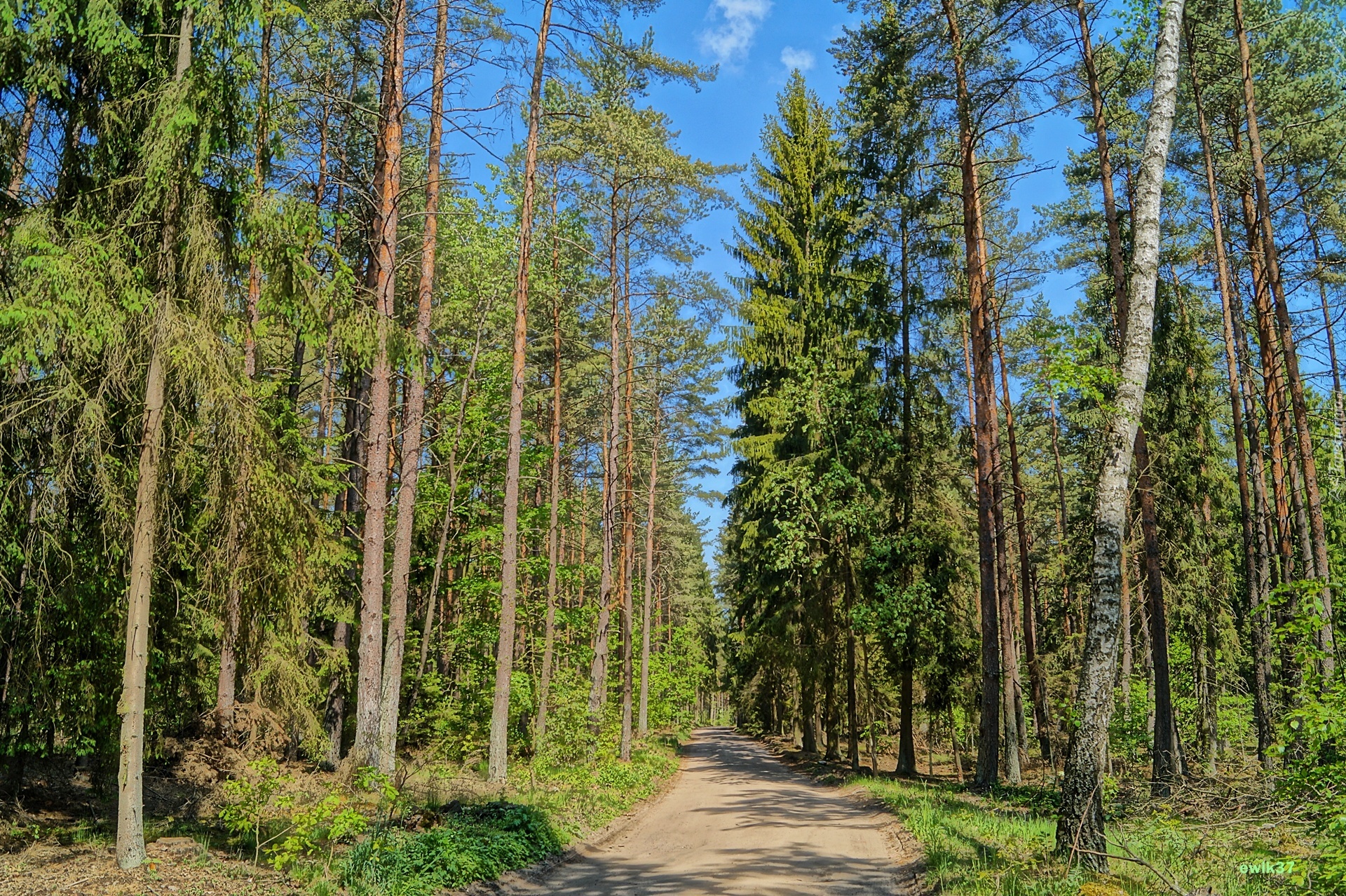 Edytor tapety: Las, Droga, Niebo