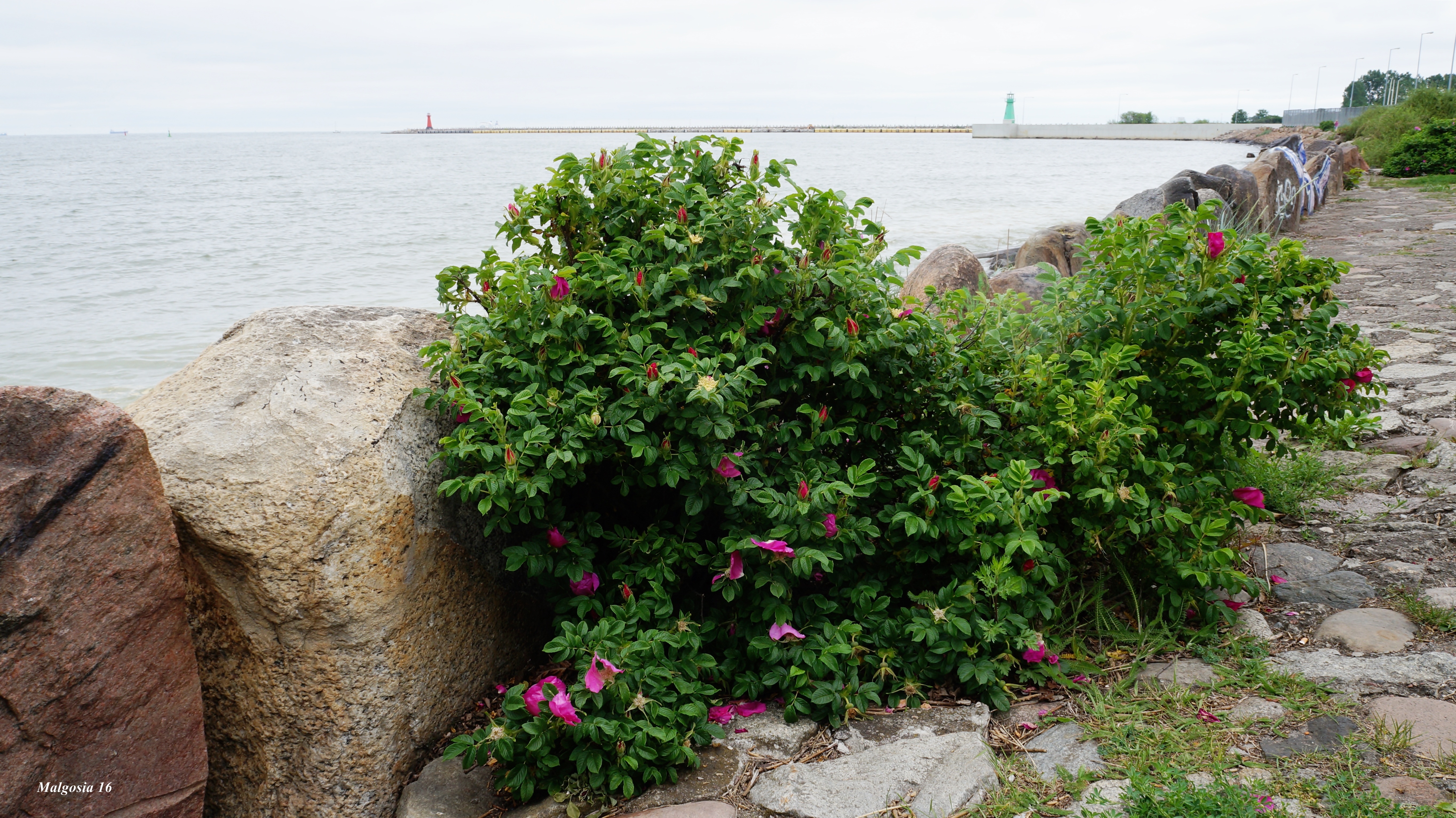 Edytor tapety: Morze, Kamienie, Woda, Rośliny, Dzika Róża