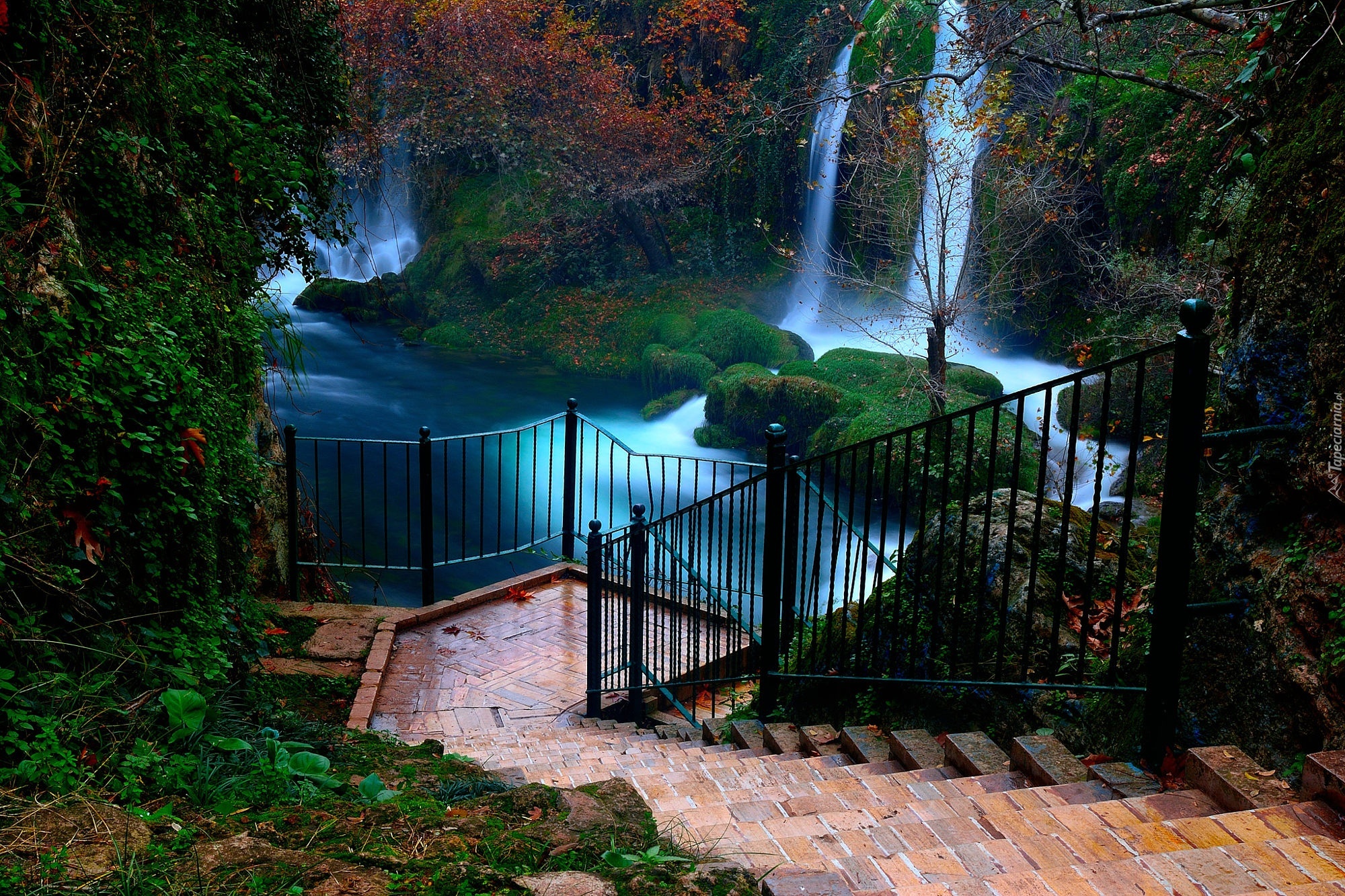 Edytor tapety: Wodospad, Rzeka, Rośliny, Schody