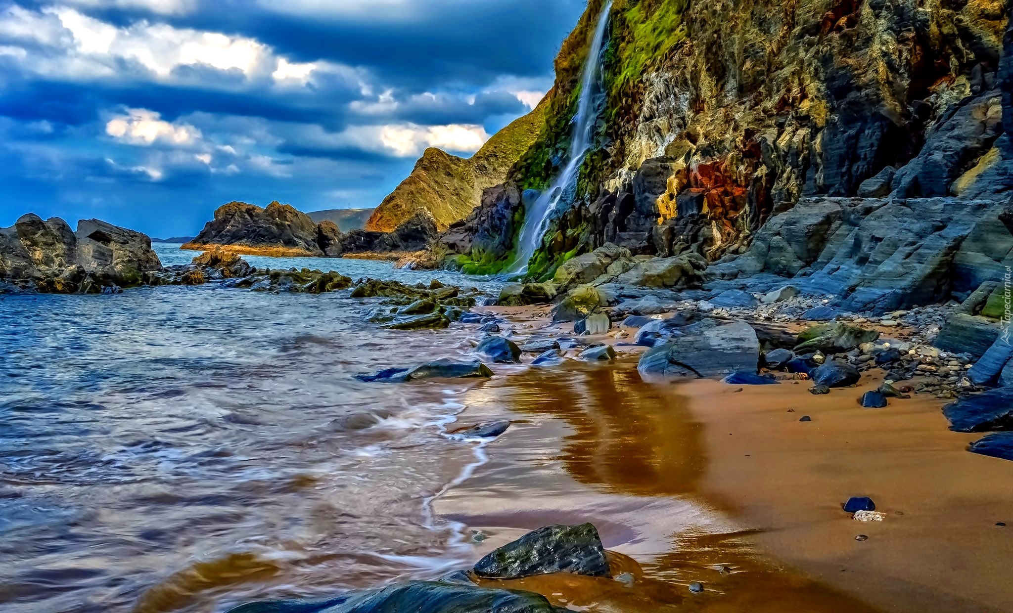 Edytor tapety: Wybrzeże, Skały, Wodospad