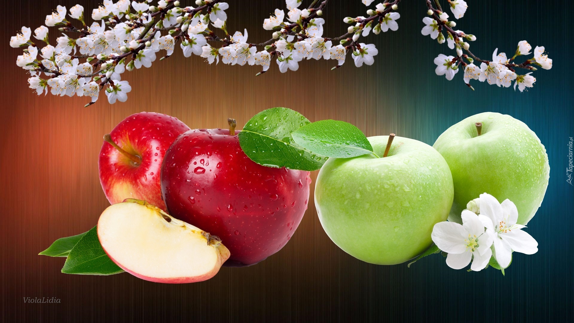 Edytor tapety: Grafika, Jabłka, Kwiaty