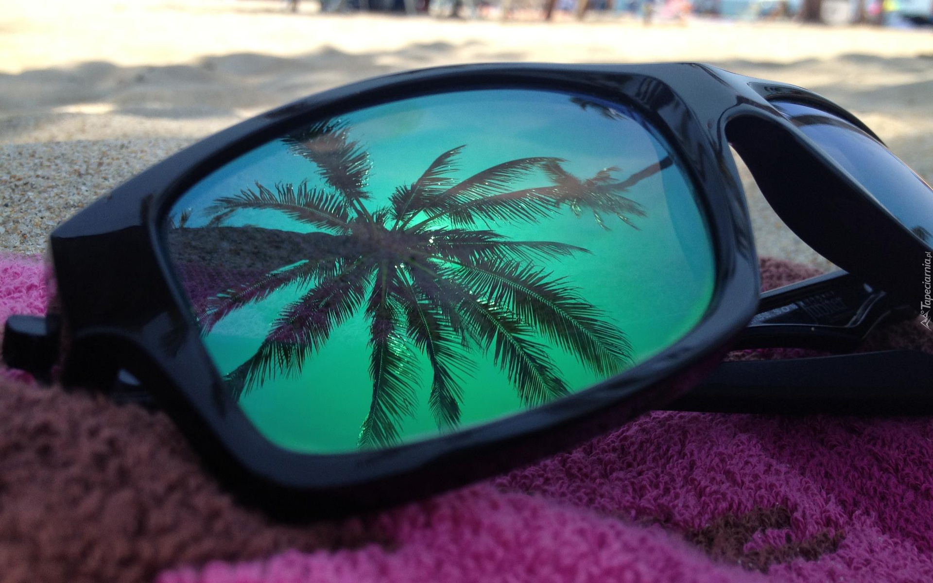 Edytor tapety: Palma, Okulary, Fiolet, Piach