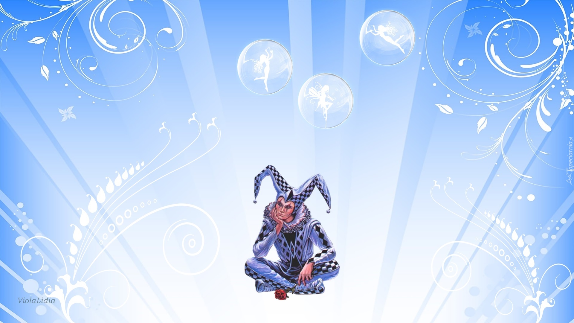 Edytor tapety: Grafika, Pierrot, Arlekin, Bańki, Wróżki, Światło