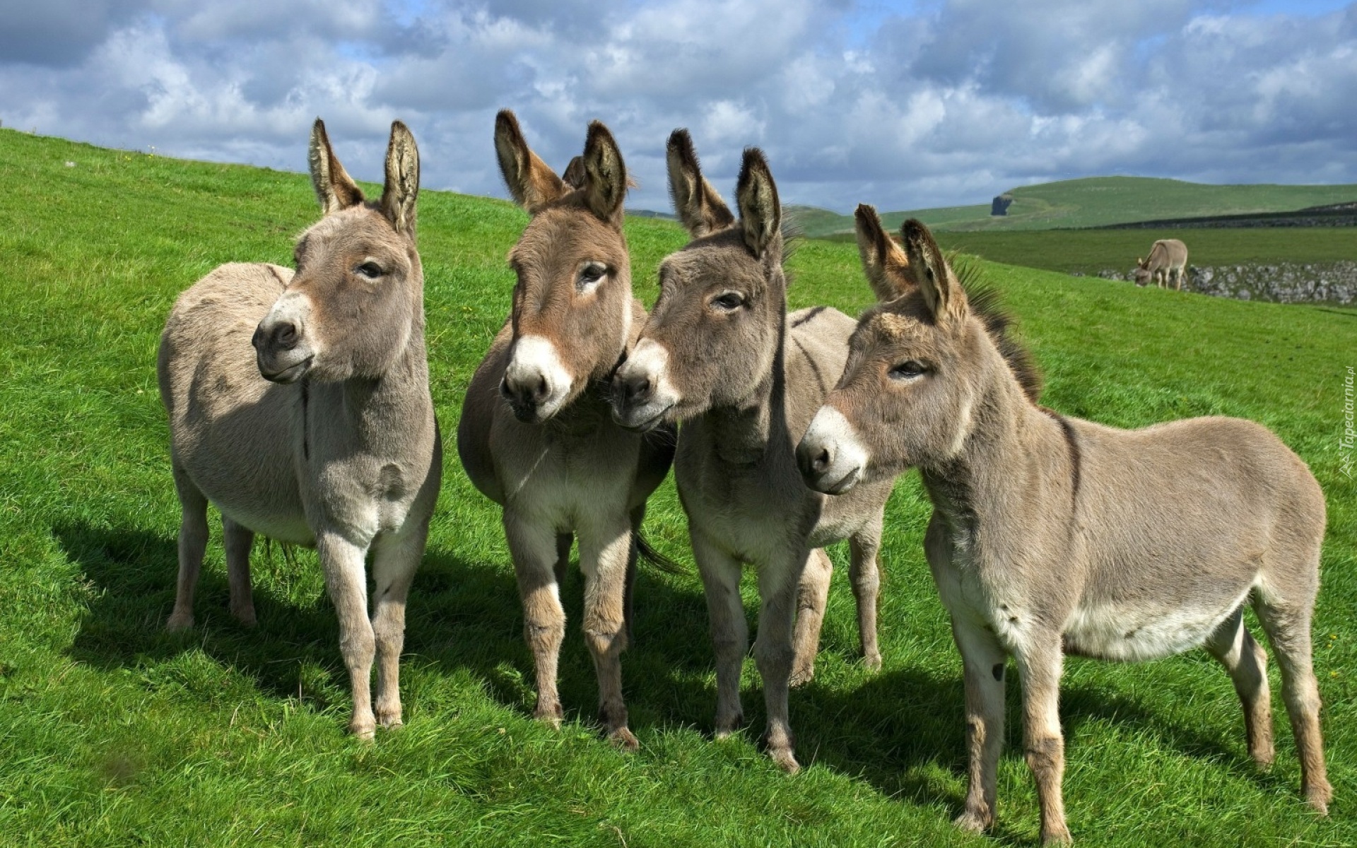 Edytor tapety: Cztery, Osiołki, Łąka, Trawa