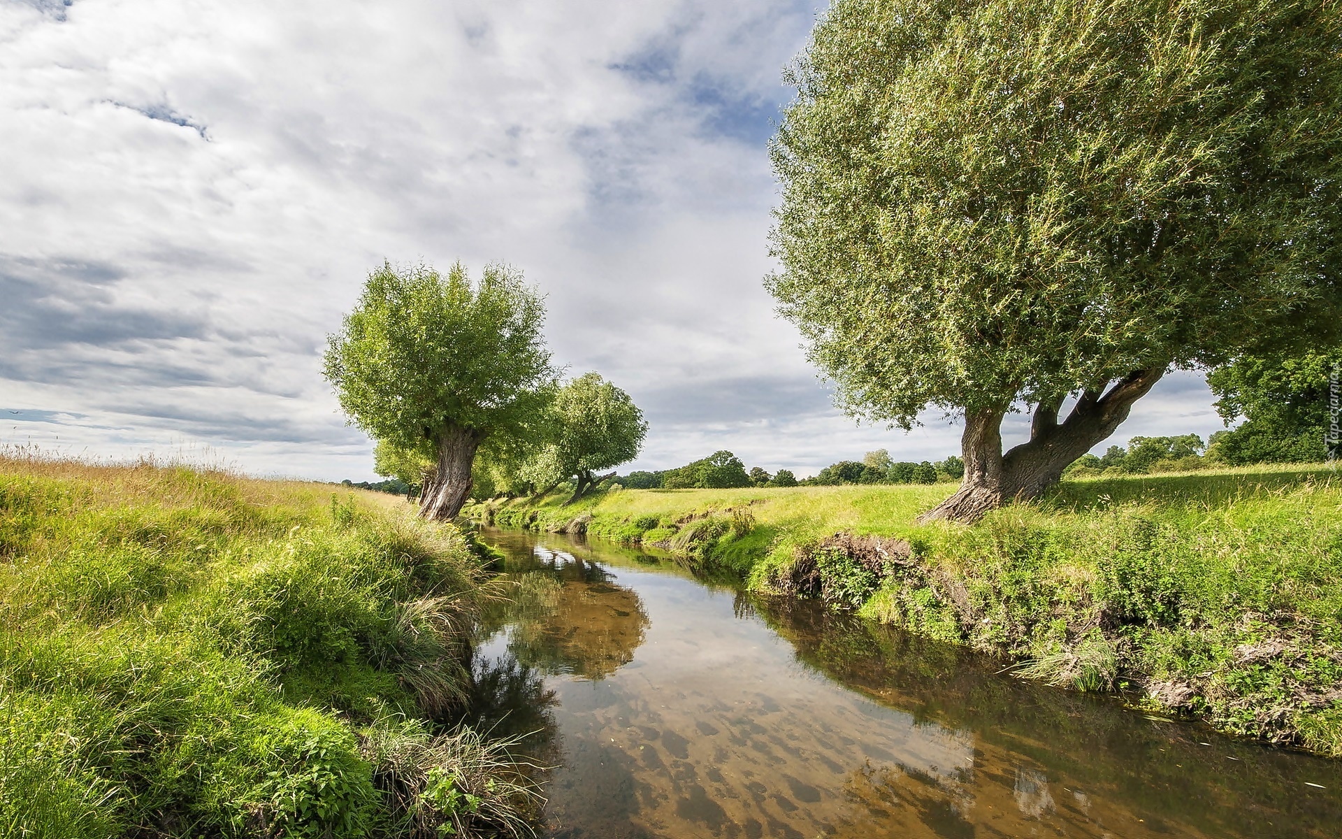 Edytor tapety: Rzeka, Łąki, Wierzby