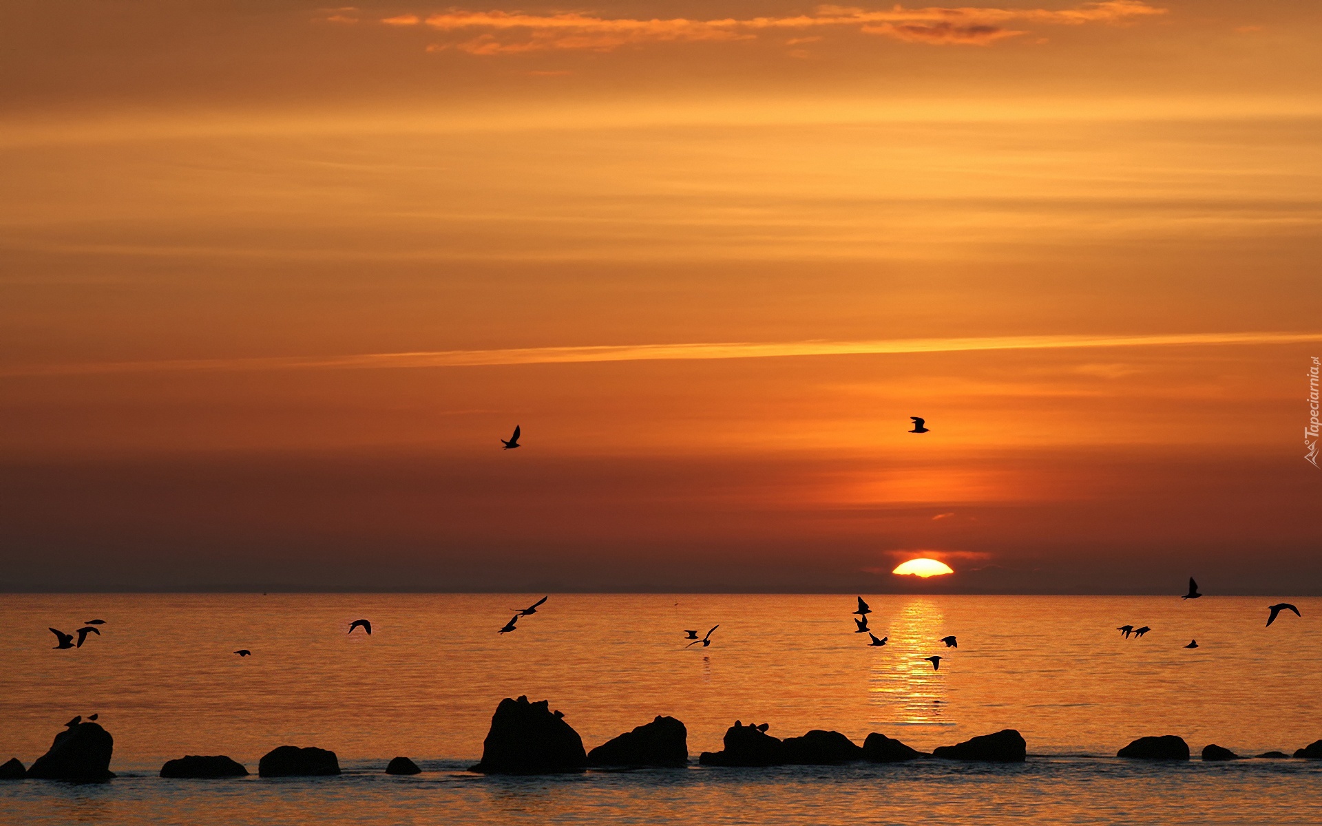 Edytor tapety: Morze, Zachód, Słońca, Ptaki