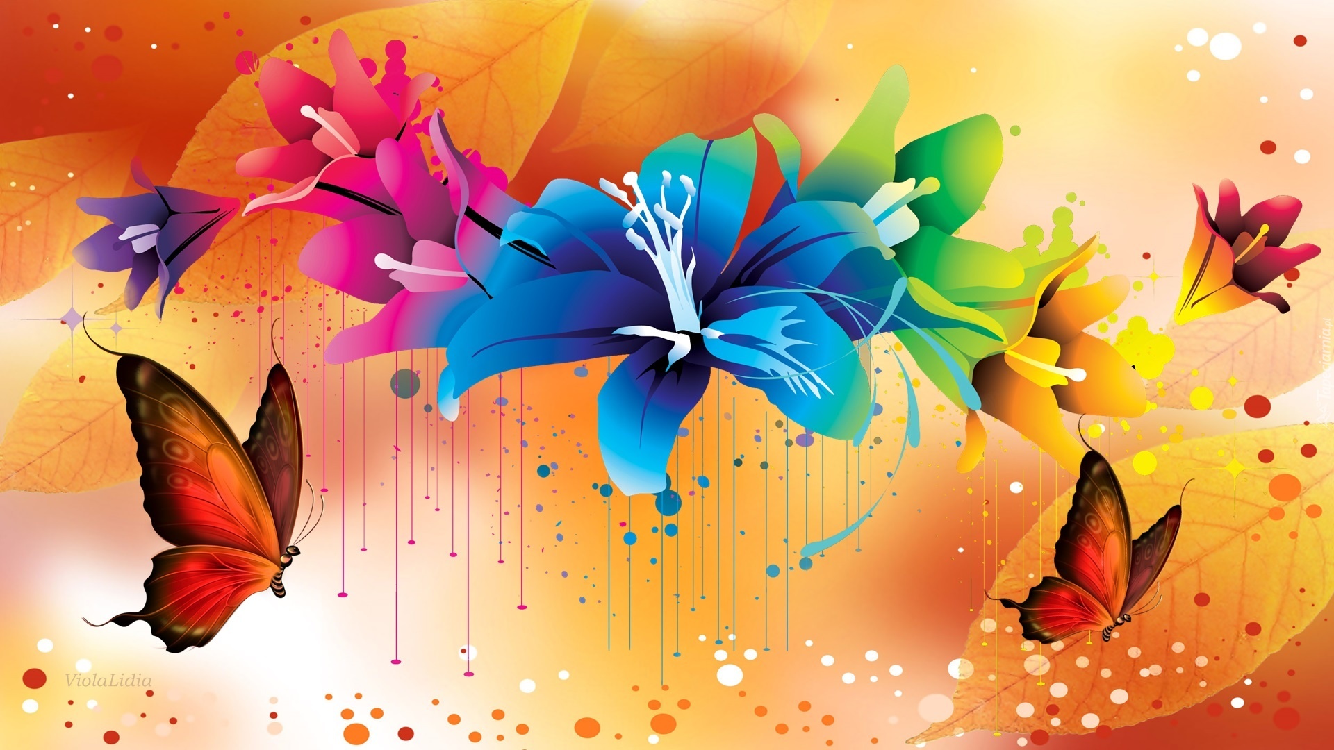 Edytor tapety: Grafika, Kwiaty, Motyle