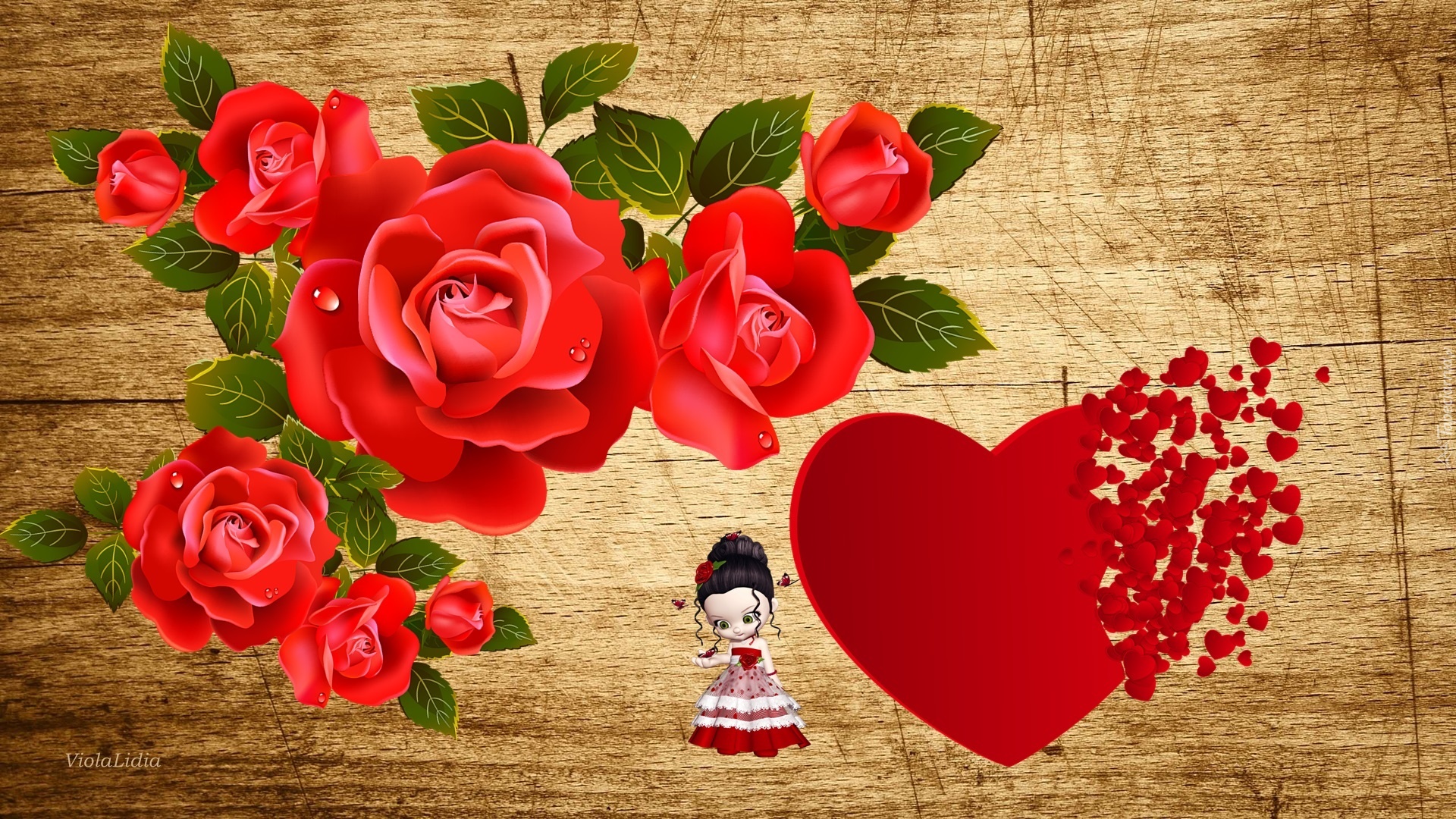 Edytor tapety: Grafika, Miłość, Serce, Czerwone, Róże, Laleczka
