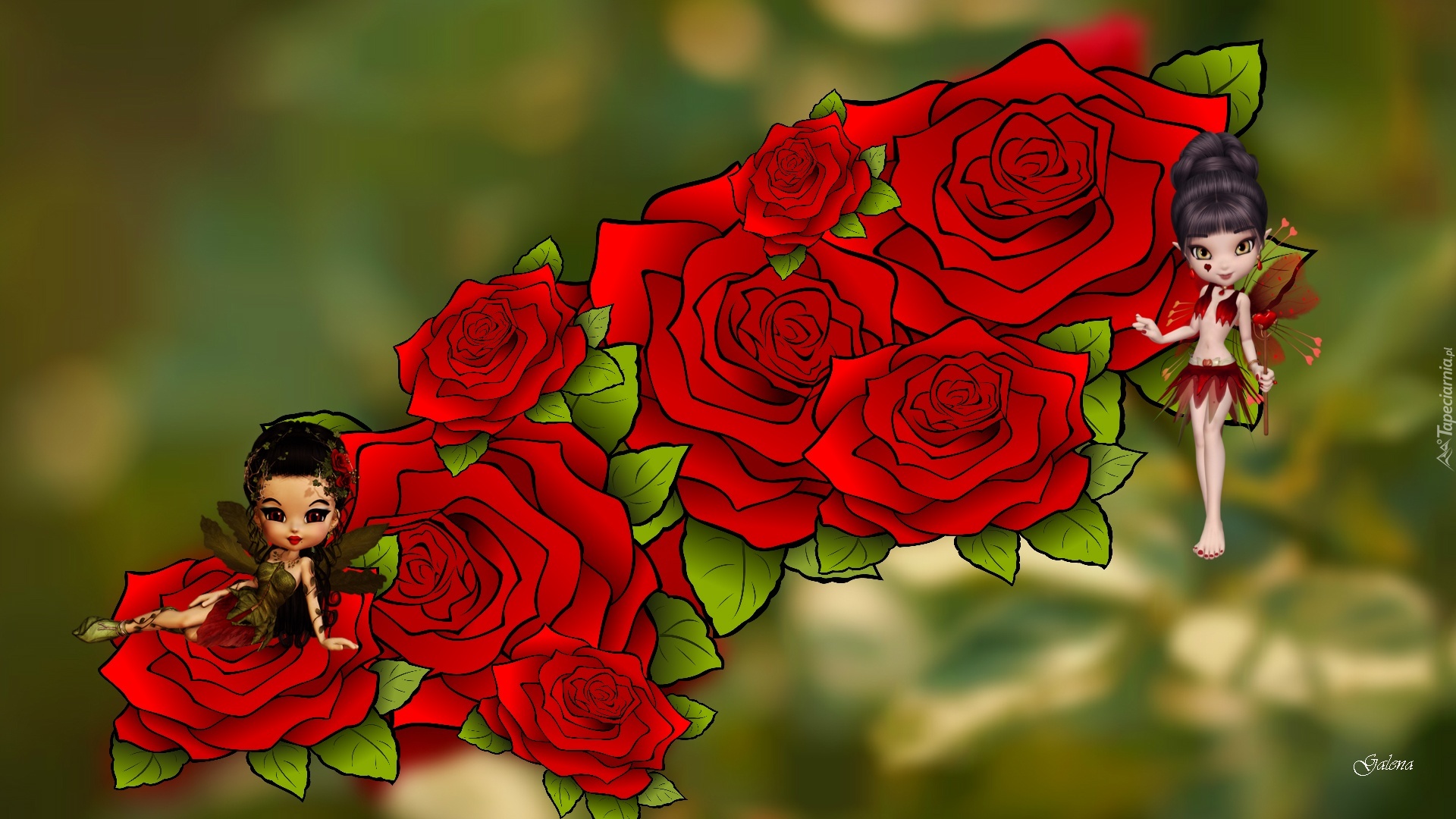 Edytor tapety: Róże, Dwie, Laleczki