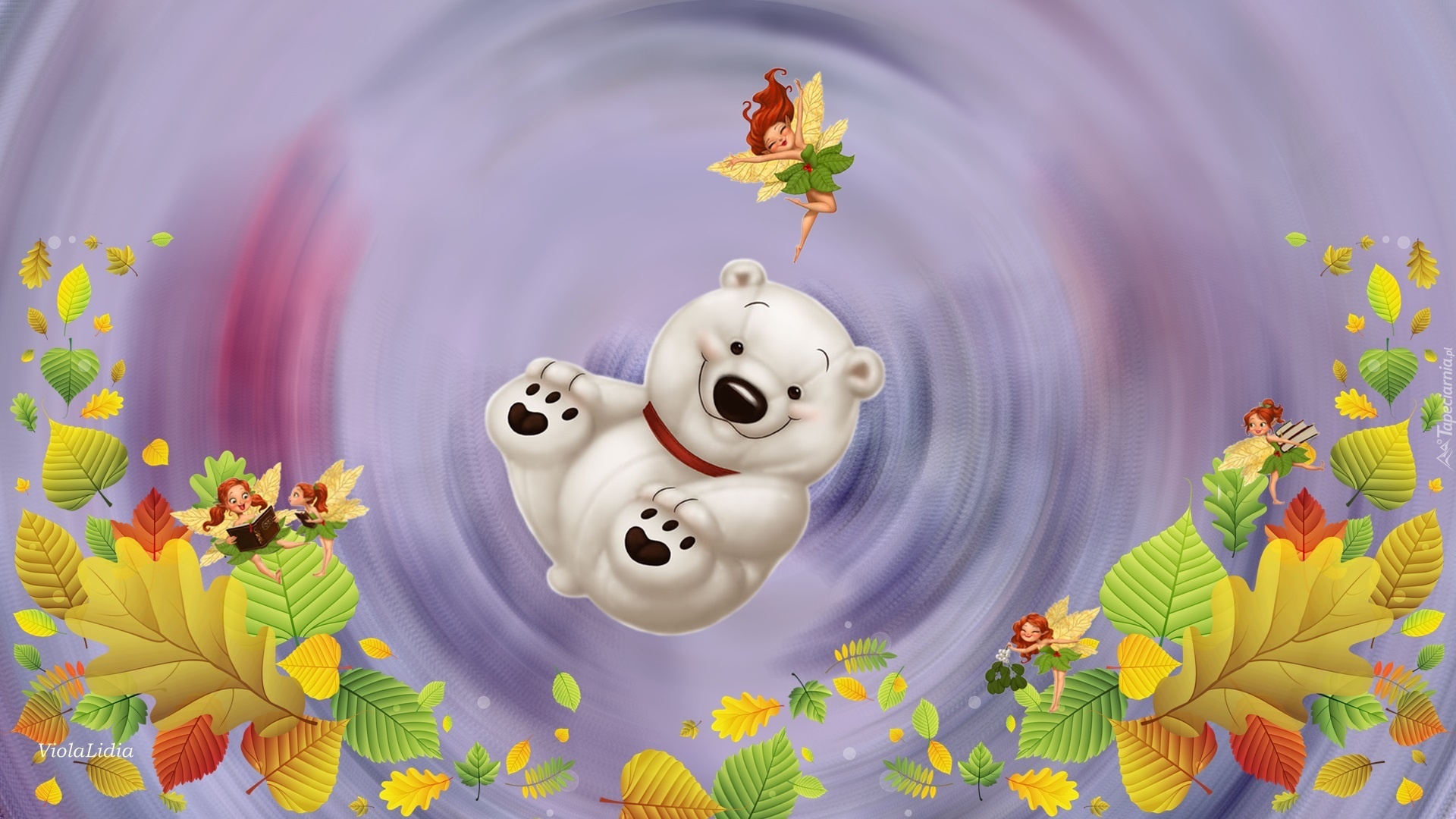 Edytor tapety: Miś, Laleczki, Liście, Radość, Zabawa