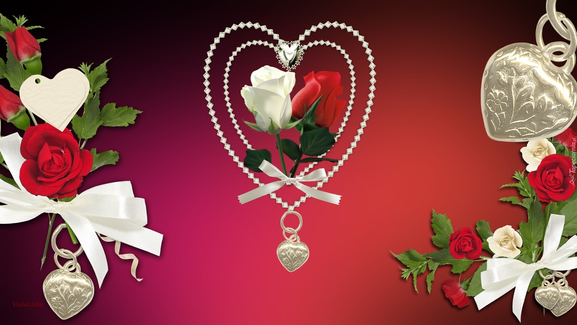 Edytor tapety: Grafika, Serca, Serce, Róże, Kwiaty