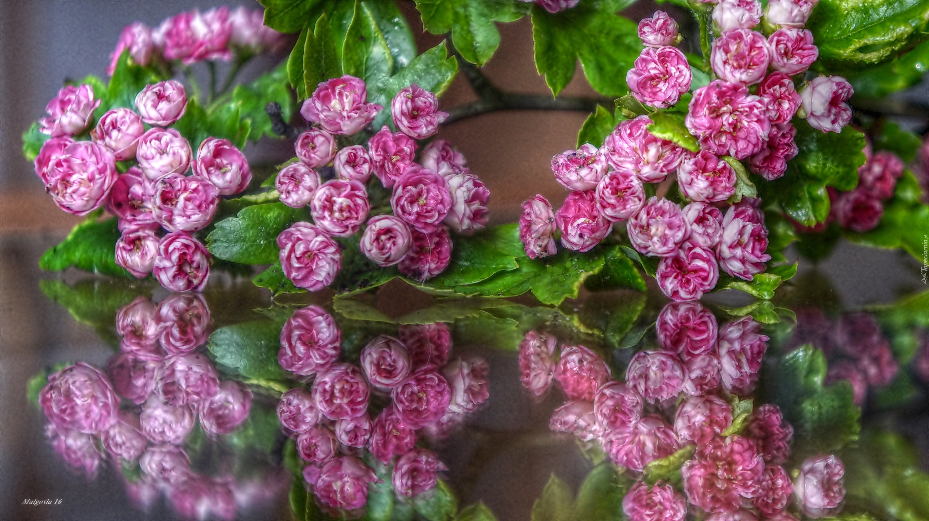 Edytor tapety: Różowe, Kwiaty, Głóg, Odbicie, HDR