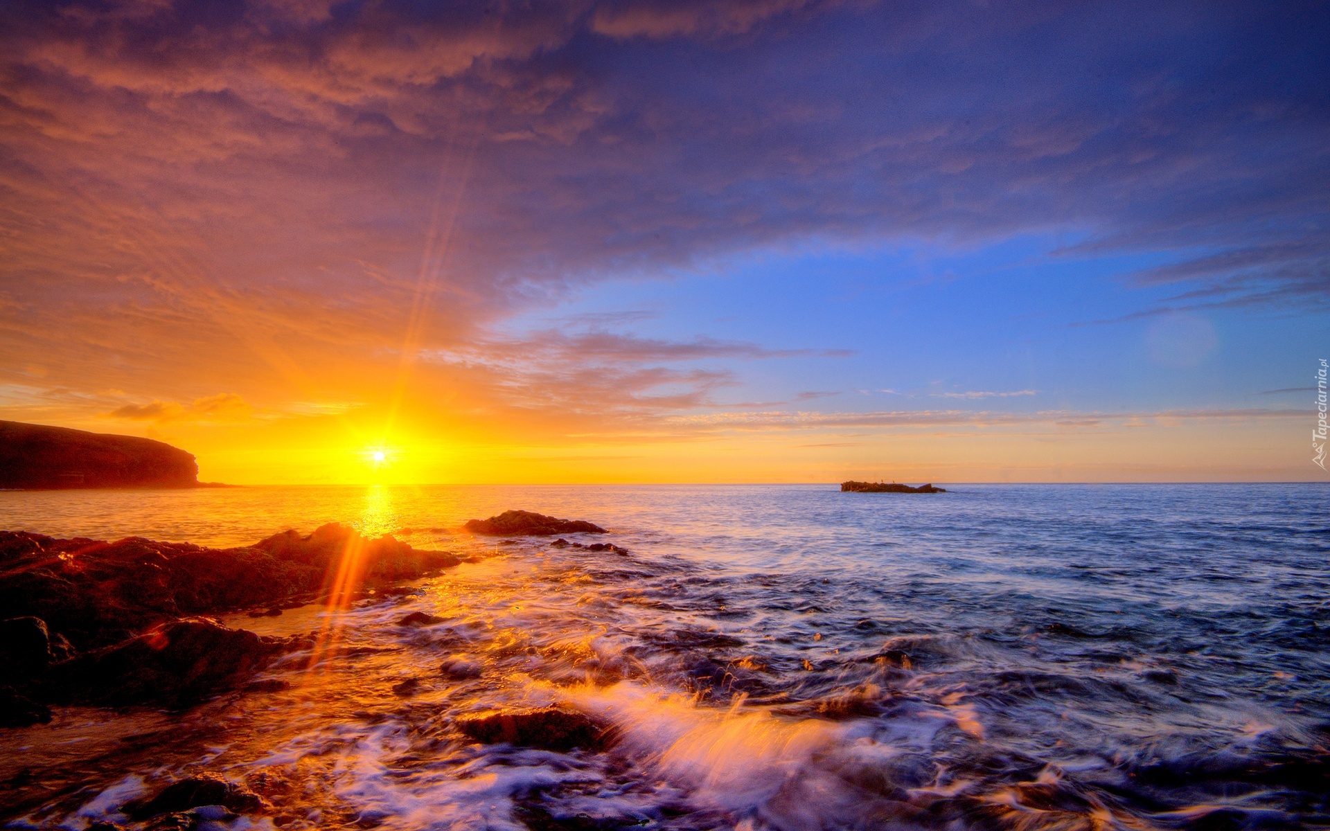 Edytor tapety: Morze, Kamienie, Zachód słońca