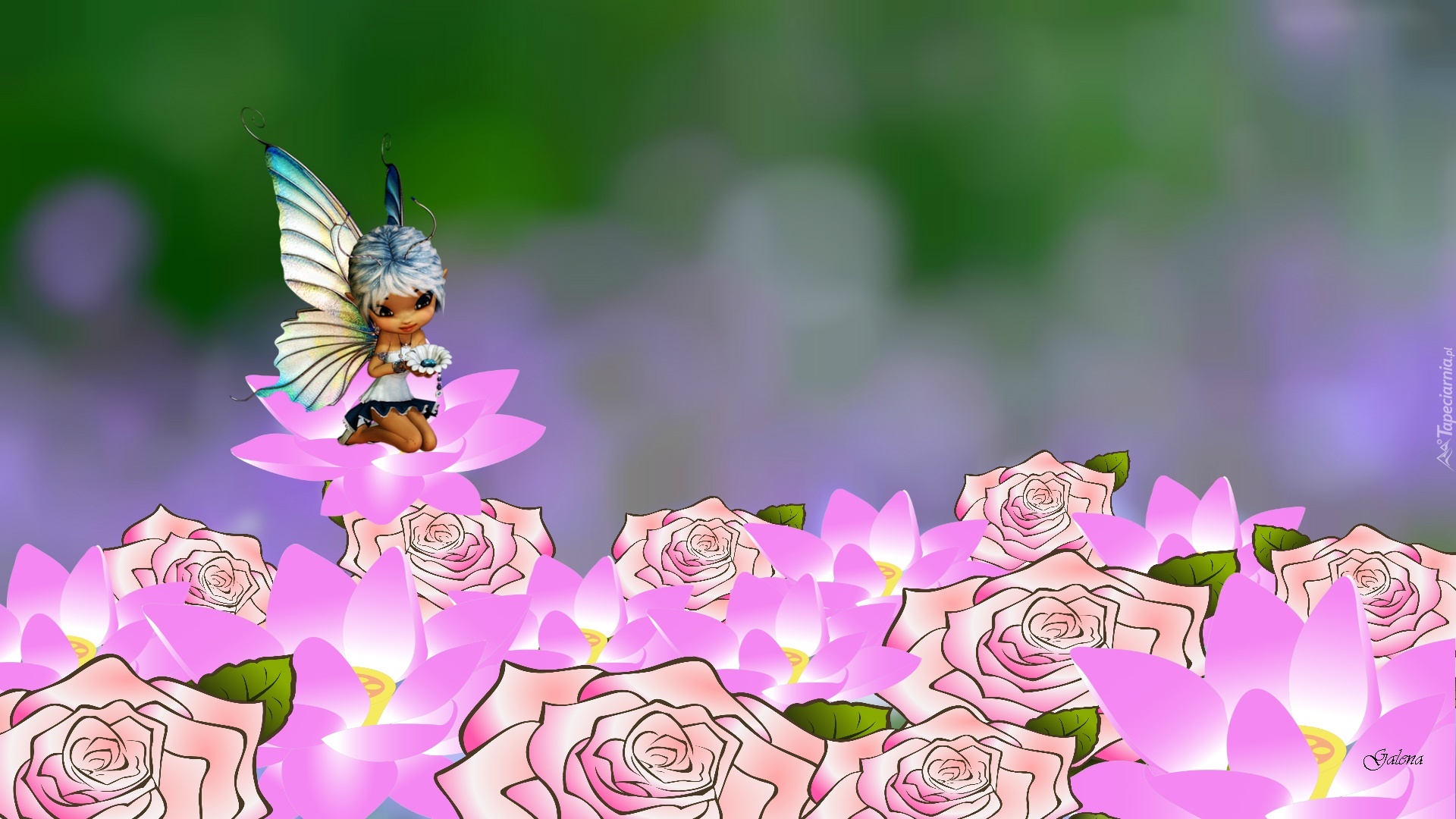 Edytor tapety: Różowe, Kwiaty, Laleczka, Wróżka