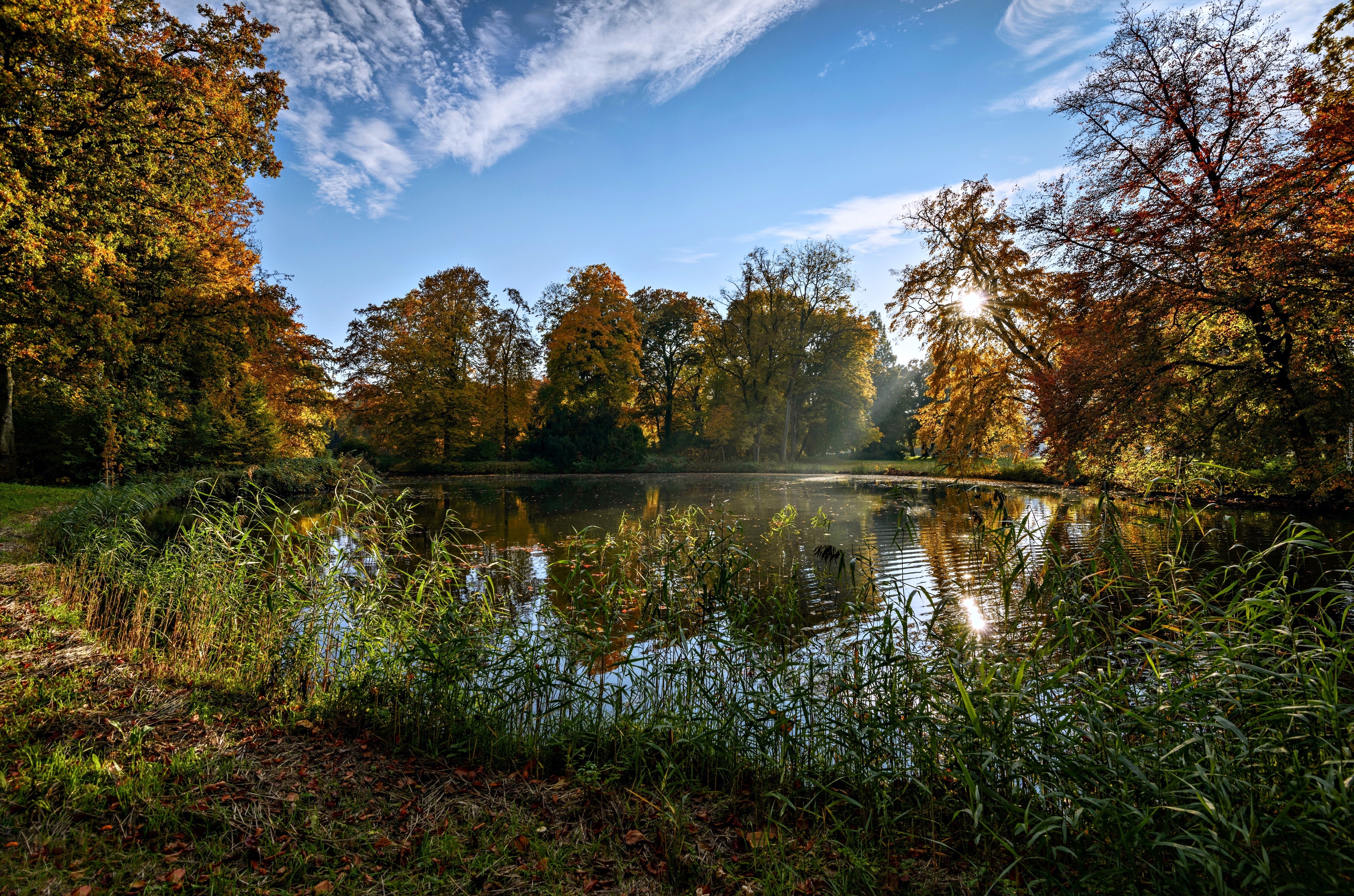 Edytor tapety: Park, Staw, Mgła, Wschód Słońca