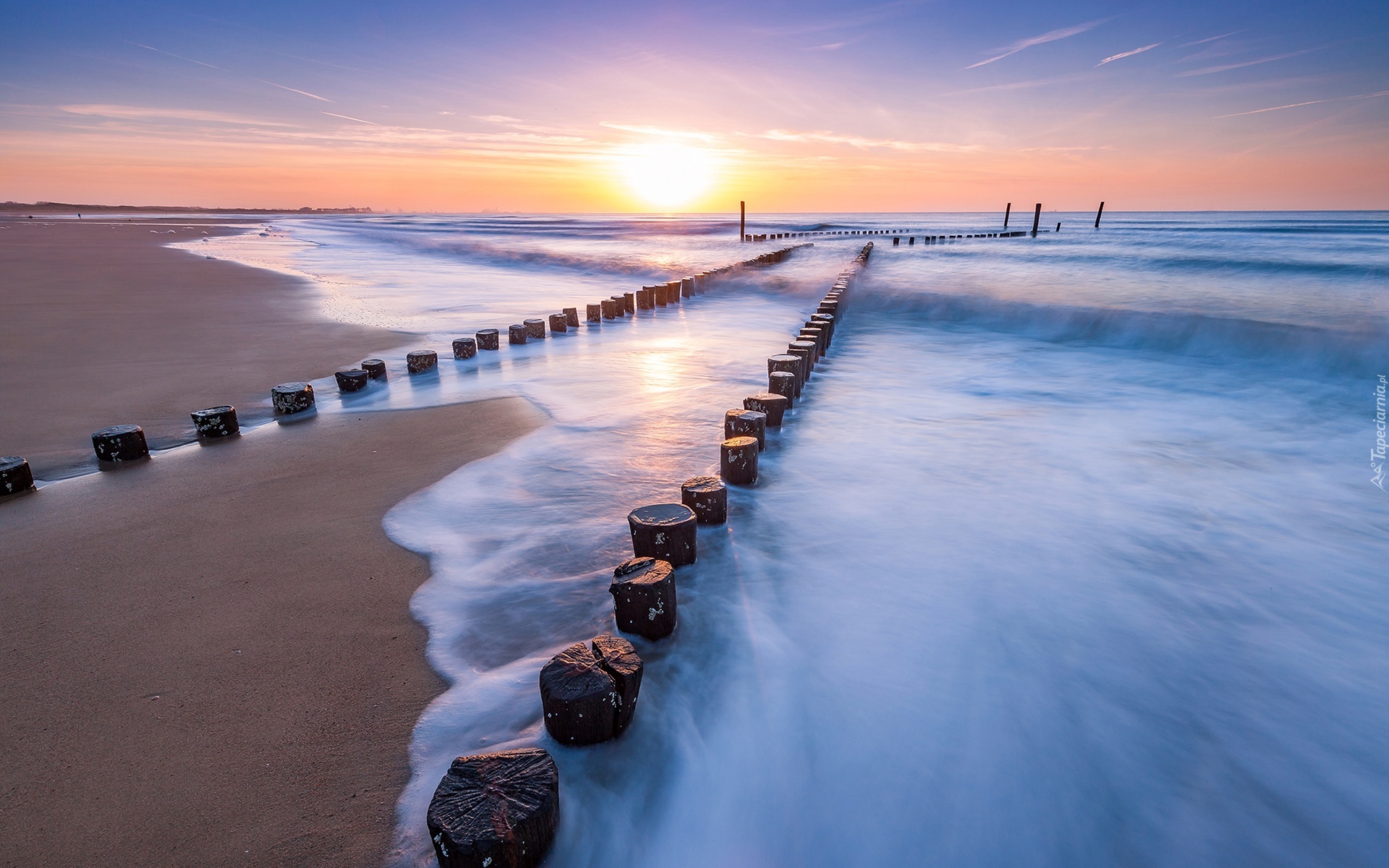 Edytor tapety: Zachód, Słońca, Morze, Plaża