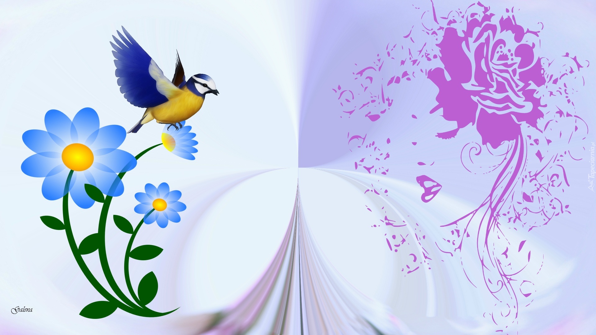 Edytor tapety: Kwiaty, Twarz, Kobiety, Ptak, Grafika