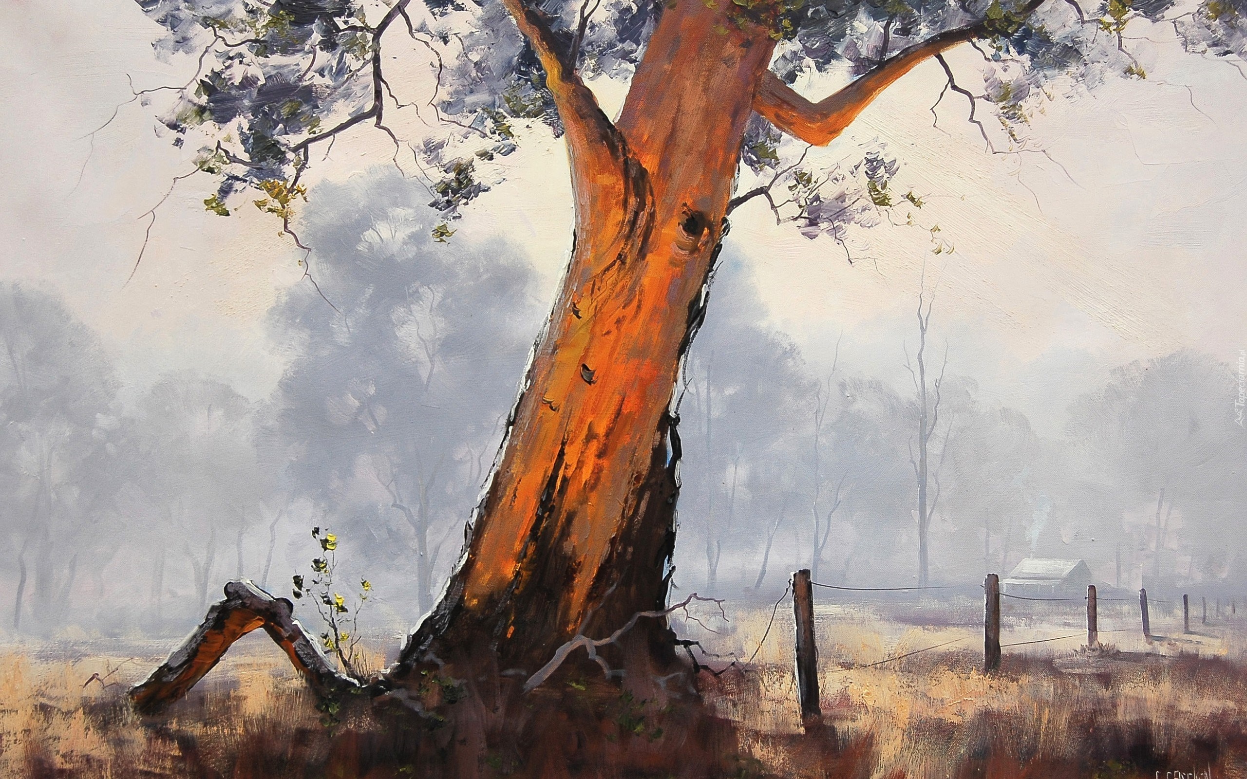 Edytor tapety: Malarstwo, Drzewo, Korzenie, Mgła