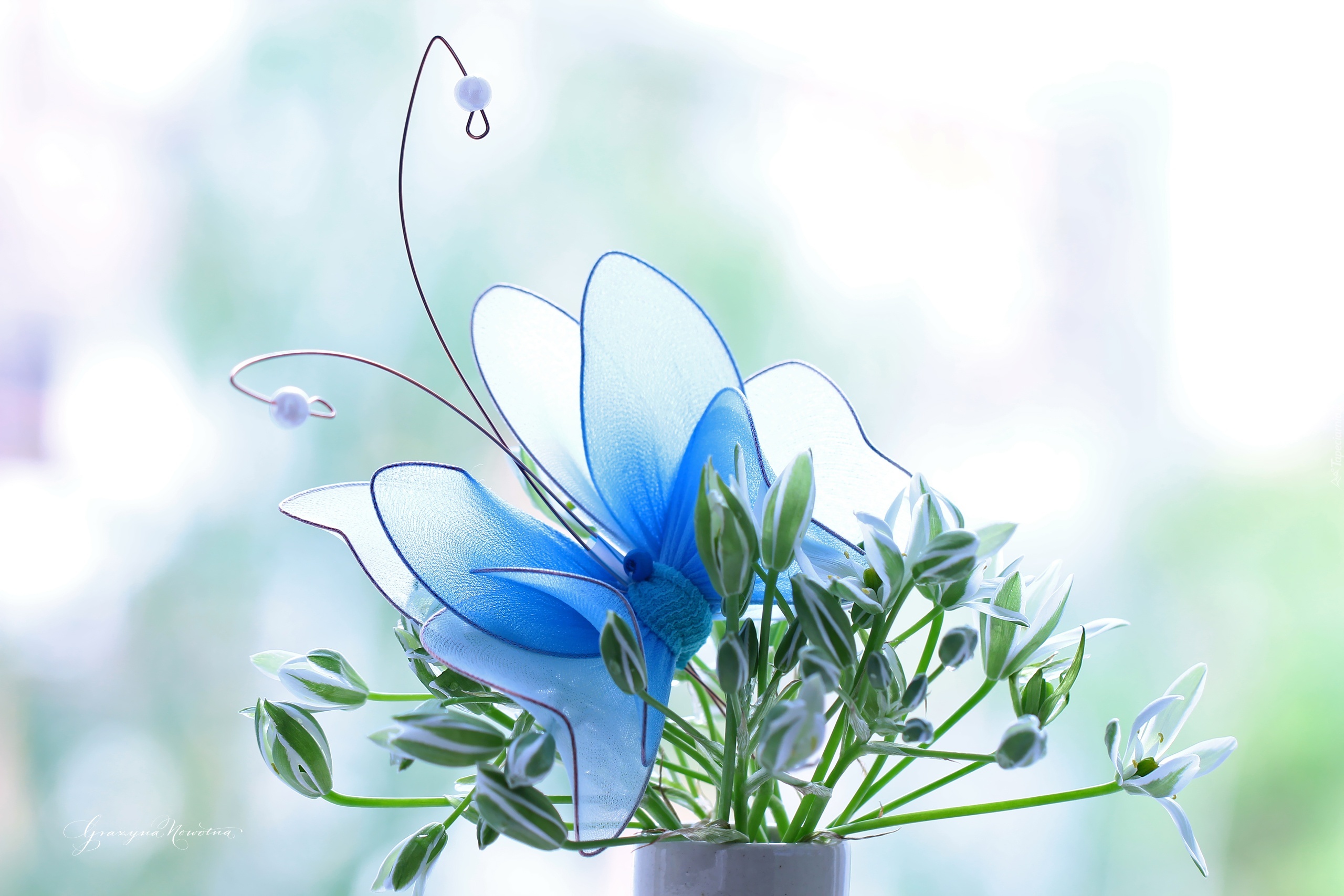 Edytor tapety: Białe, Kwiaty, Motyl, Ozdoba