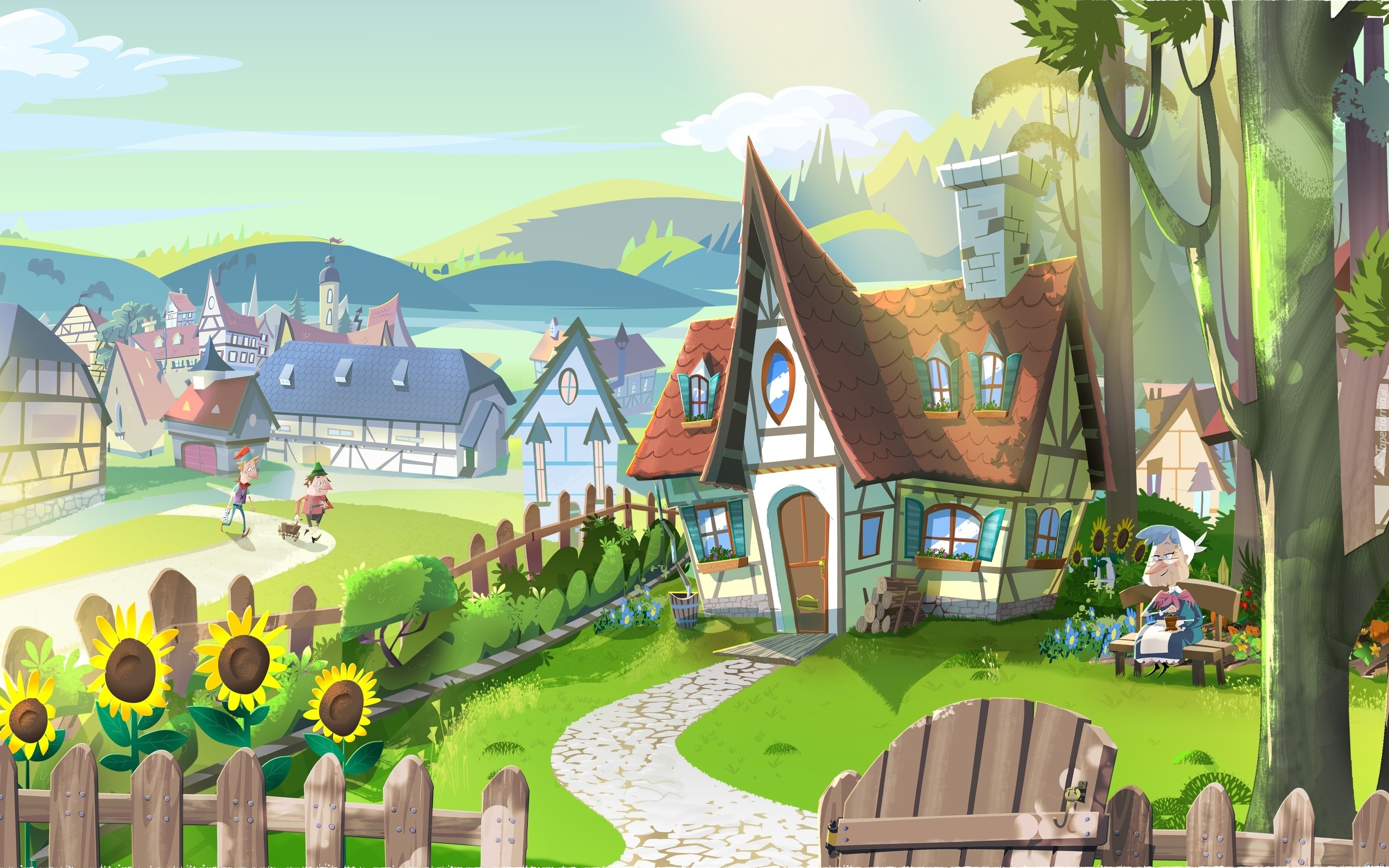 Edytor tapety: Domy, Płot, Dzieci, Osada