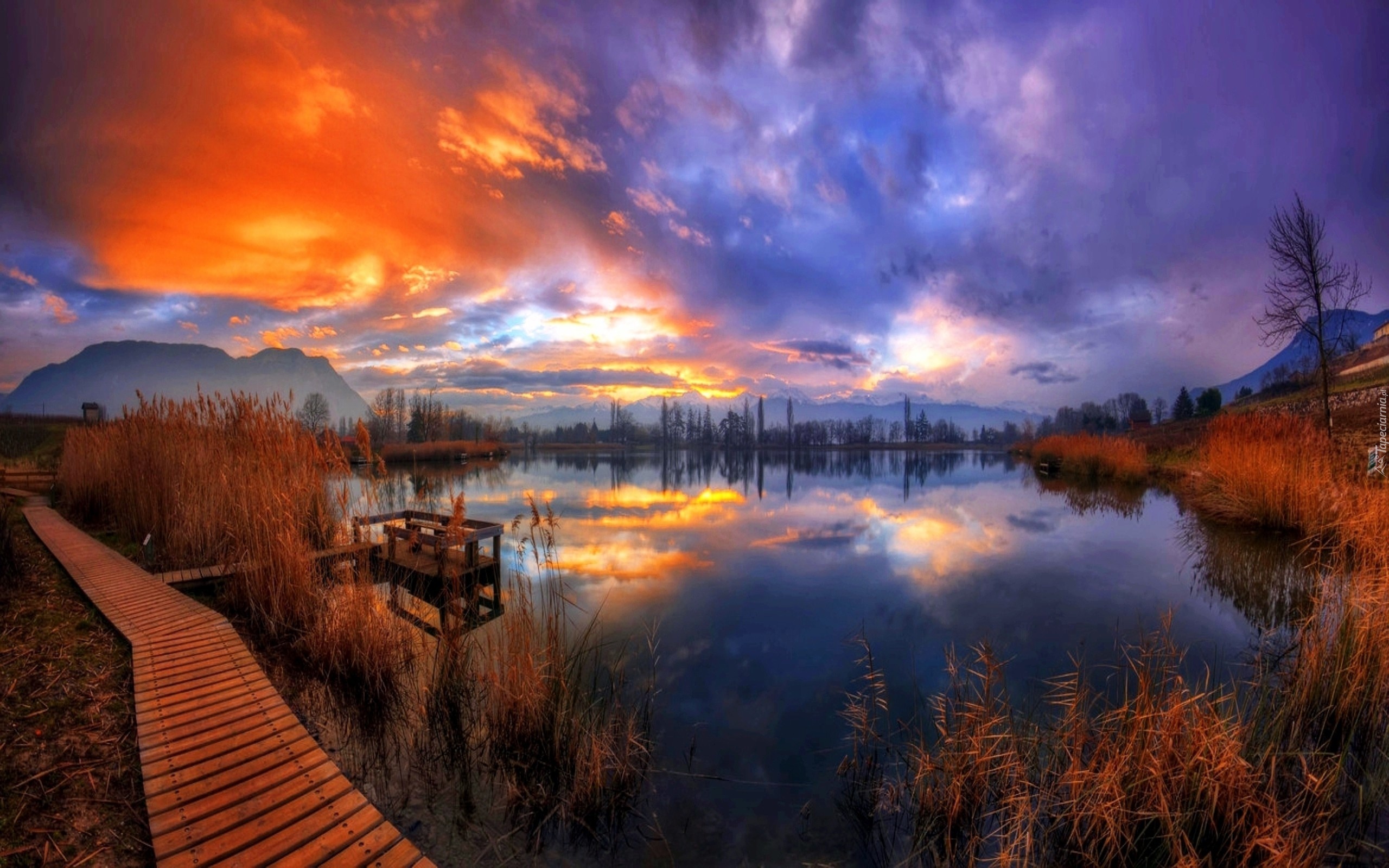 Edytor tapety: Jezioro, Odbicie, Chmury