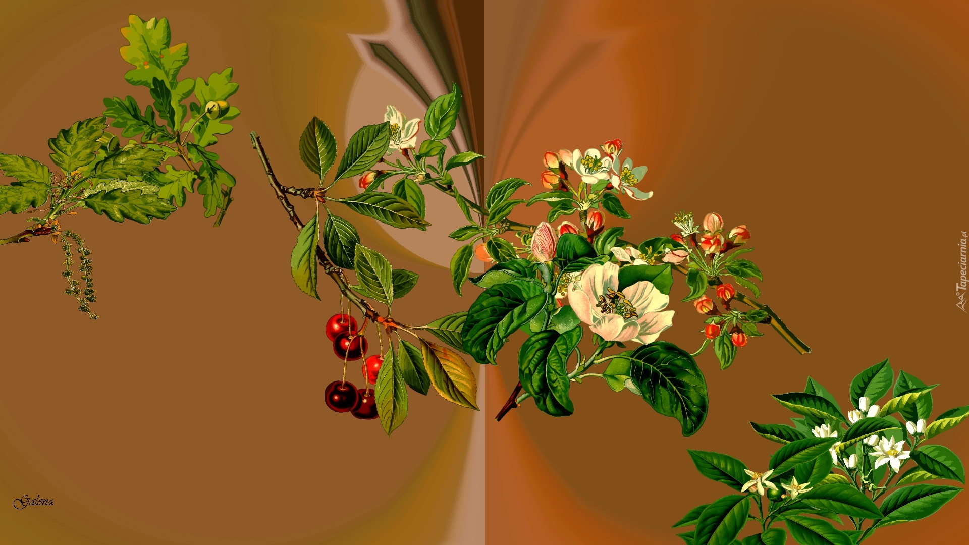 Edytor tapety: Grafika, Liście, Owoce, Kwiaty, Gatunki, Rośliny