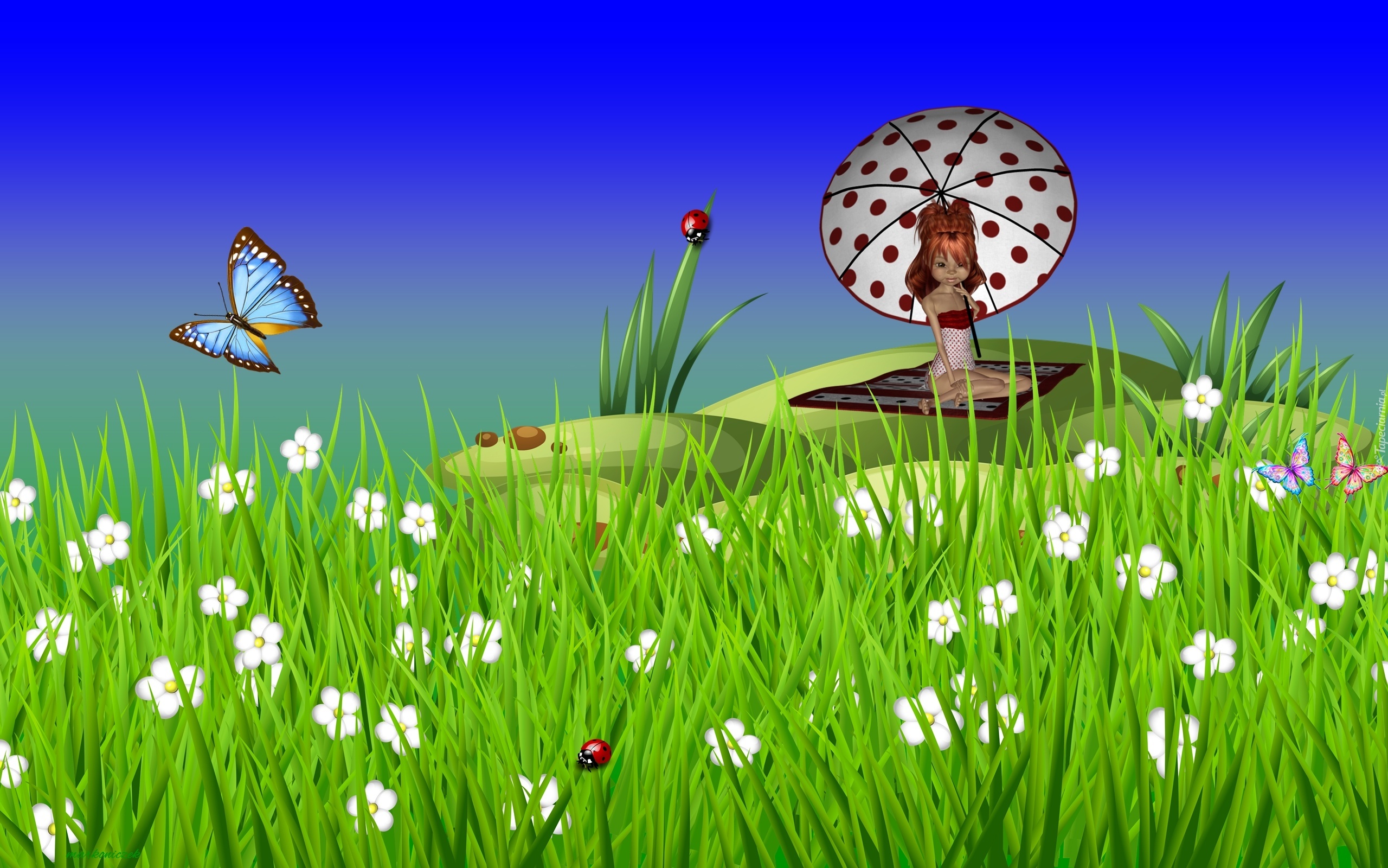 Edytor tapety: Grafika, Łąka, Kwiaty, Motyle